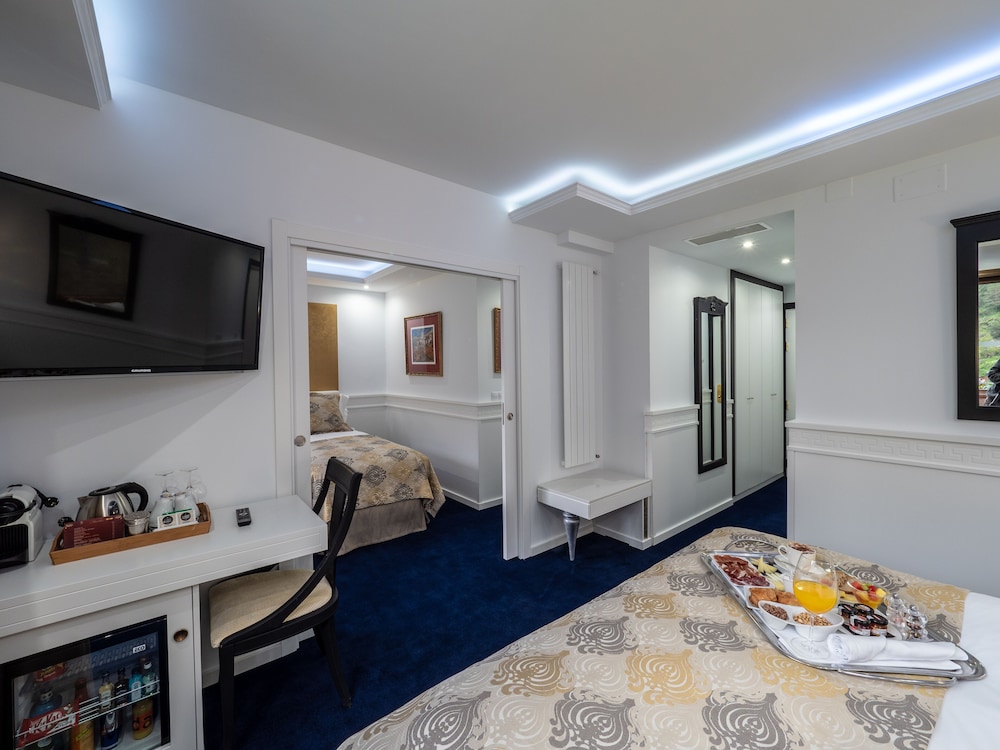 Kahden makuuhuoneen ja kylpyhuoneen huone oli oikein tilava, siisti ja mukava. Hotellin huoneissa ei ole ilmastointia, joten se oli miinus, sillä +30 helteellä, huone oli todella kuuma. Pyynnöstä saimme huoneeseen puhaltimia. Huone olisi ilmastoinnin lisäksi pientä kunnostusta vailla, mm toinen poreammeemme ei toiminut, käsisaippua oli rikki ym pientä. Nämä eivät kuitenkaan matkamme pilanneet. Exclusive huoneeseen kuuluva aamupala oli loistava. Myös hotellin sijainti ja maisemat olivat upeat. Yksi vastaanotossa työskentelvä nainen oli todella ystävällinen ja osasi englantia hyvin. Kaikenkaikkiaan perheemme piti hotellista paljon.