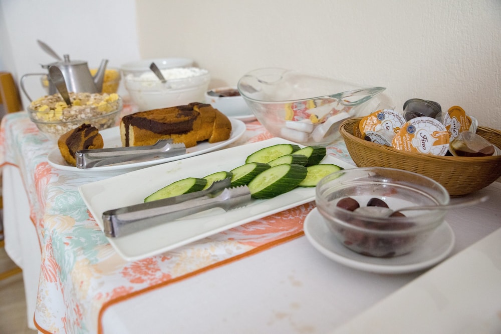 Hotel je veľmi dobre situovaný, iba pár krokov od pláže a asi 5 minút chôdze do centra Kamari. Hotel má bazén, Wifi, izby sú vybavené klimatizáciou, trezorom, fénom, chladničkou a TV. Počas nášho pobytu - 7 nocí - bola naša izba každý deň uprataná a posteľnú bielizeň a uteráky nám vymenili 3x. Raňajky boli v pohode, dalo sa vždy niečo vybrať.