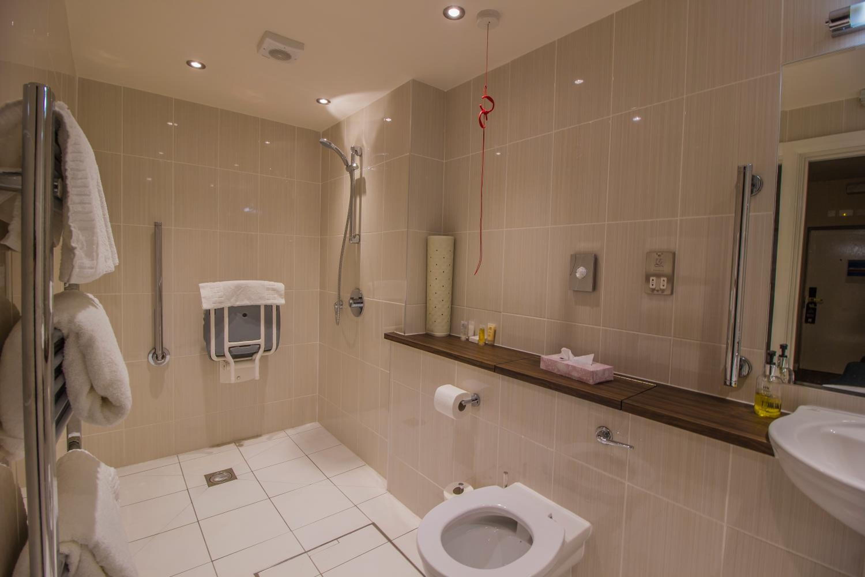 The room ( accessible) was very good . Shower great Spotless and comfortable.