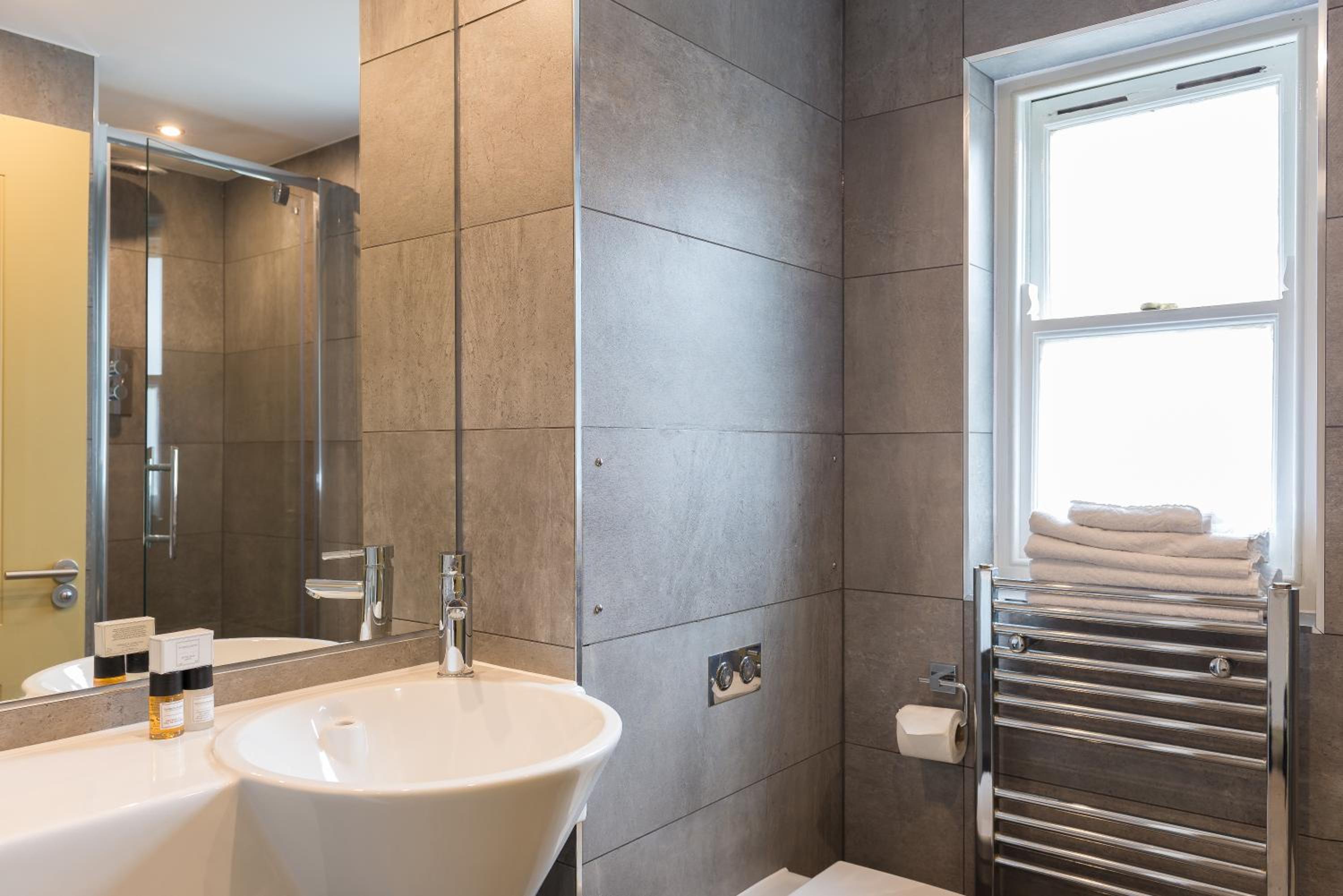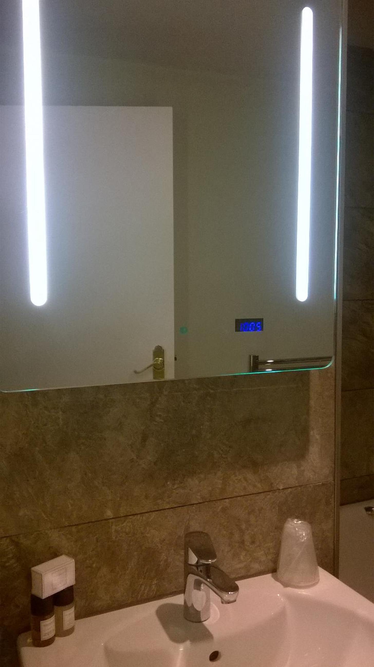 bathroom door was glass and opposite the window, so light was slightly annoying when trying to sleep (personal preference as very light sleeper) towel over the door worked ok