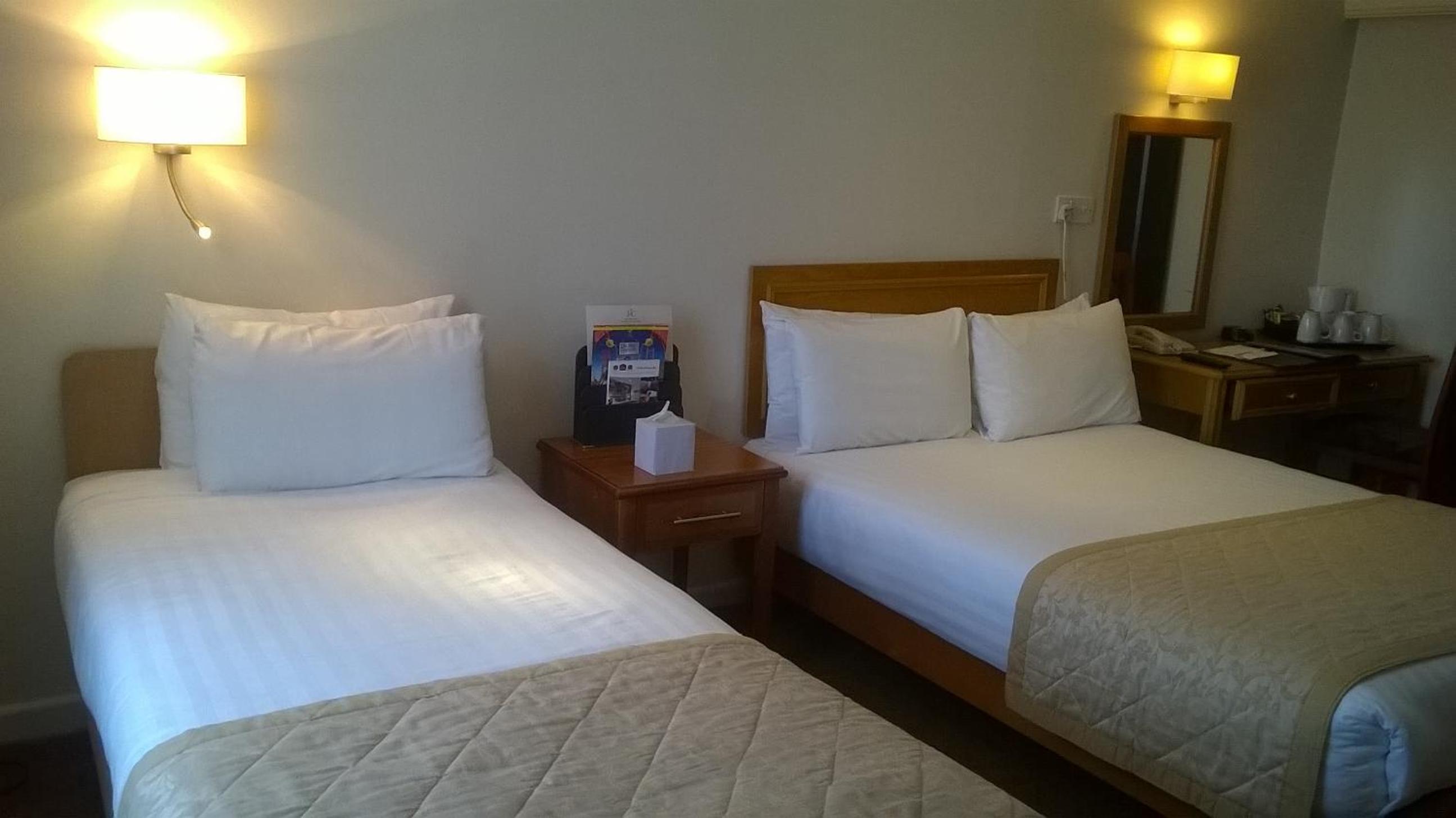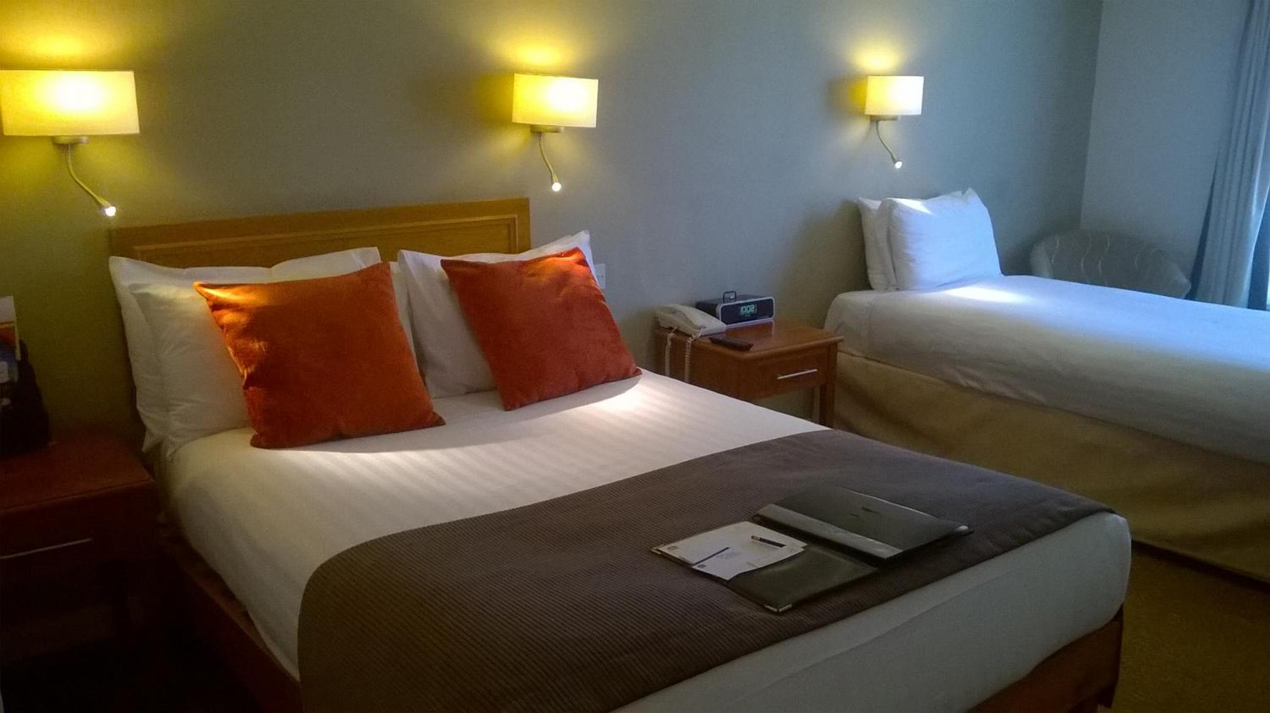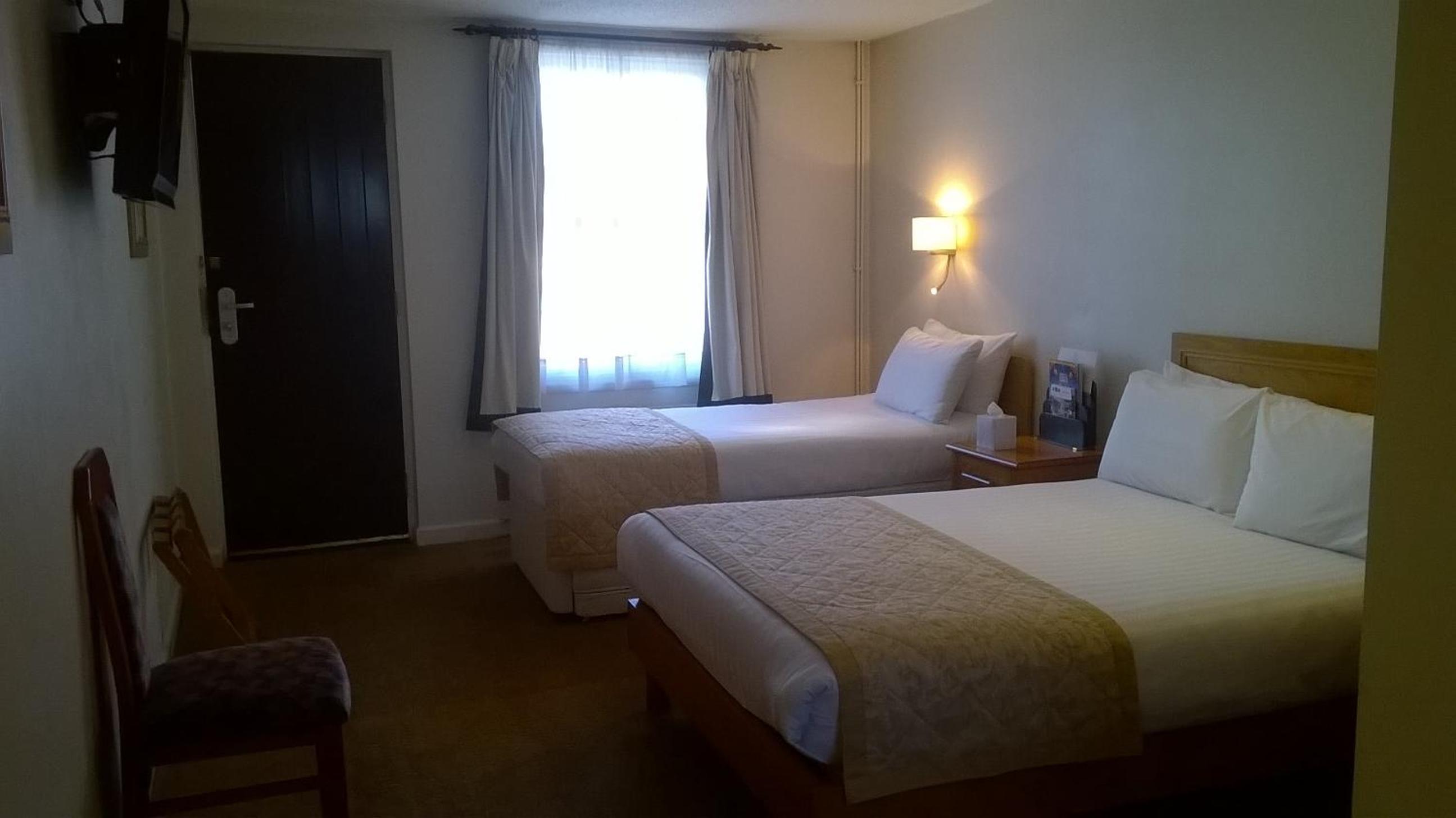 Stayed for 2 nights with my mom and sister. Booked family room with 3 beds, Room was totally unsuitable for our party, very dark poor lighting (proberly good as there was a years worth of dust down the back of the beds), only had a bath and a shower attachment with no screen or curtain. Bathroom floor sloped away, with steps into the toilet area. My mom is in her mid 70s partially sighted and my sister in her 50s with some mobility issues. Staff were very accomadating and agreed to move our room. End in room 222. Much better lighting , but only had 2 beds, so my sister and i had to share like we were kids again. Again both my sister and mom were unable to use the shower over the bath as there were no grap rails to help get in or out. Even as someone perfectly able bodied i had to steady myself with the sink. This room was in the modern side of the hotel and was much cleaner than the 1st.