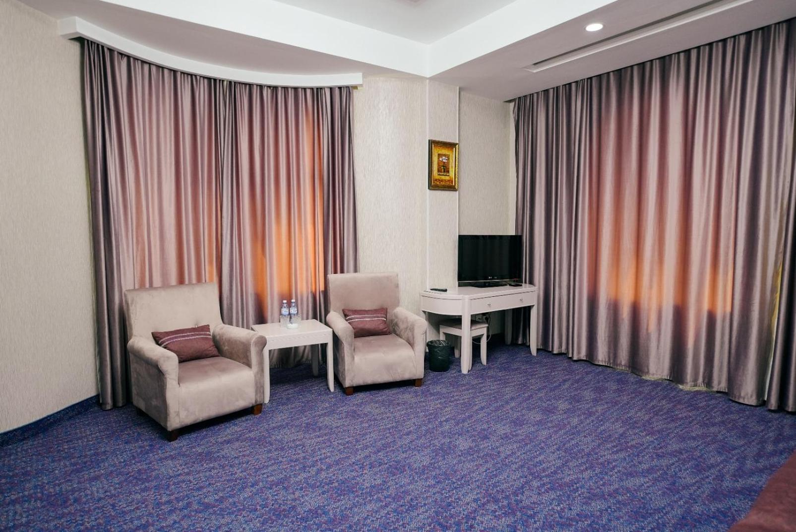 The Safran Hotel, located in the Gyandzhlik district of Baku, offers elegant and air-conditioned rooms with free Wi-Fi, flat-screen TVs, and balconies. The spacious rooms feature carpeted floors with floral designs, dark wooden furniture, desks, minibars, and modern shower cabins in the private bathrooms.