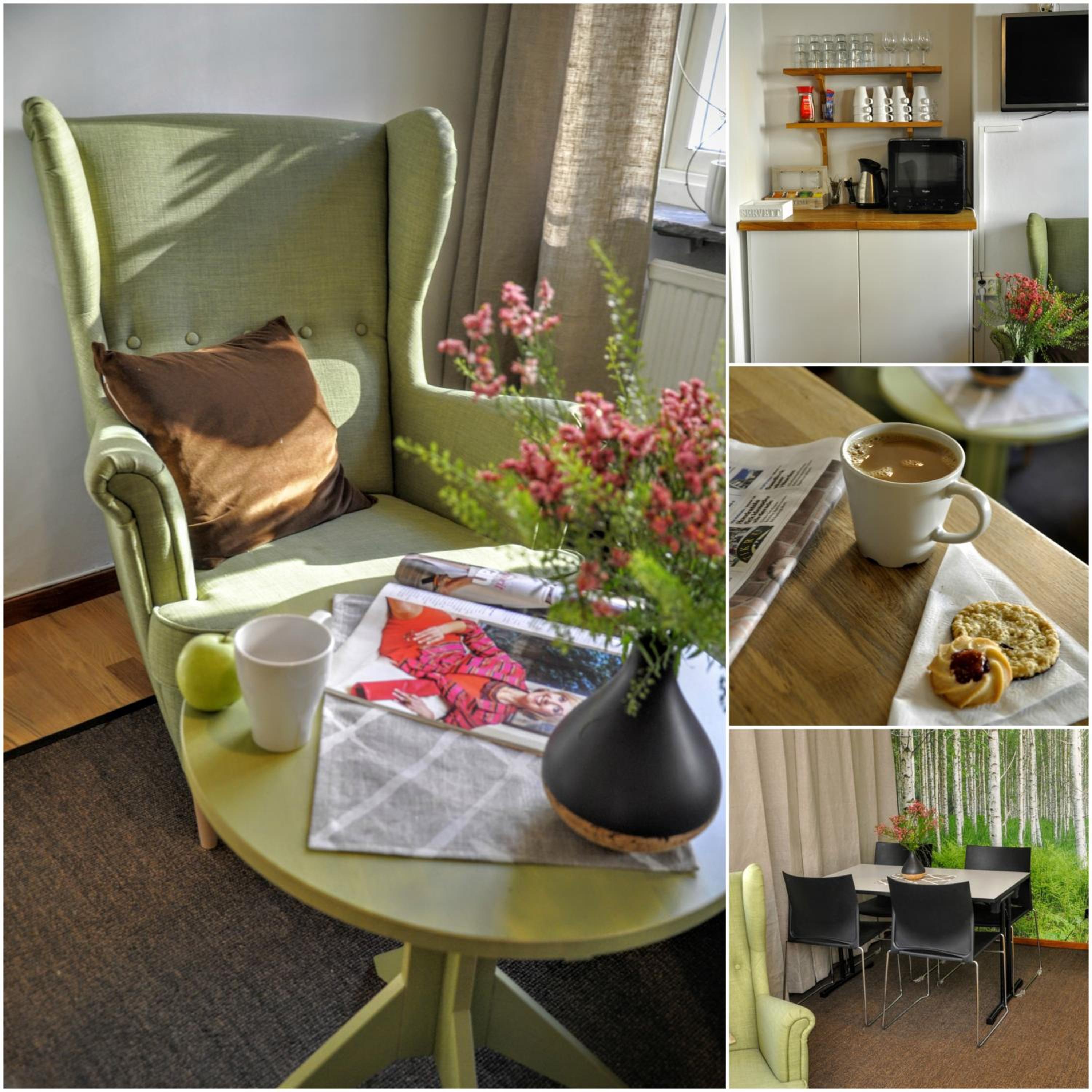 Och ett fint fika rum man kunde sitta och fika i när man hade varit ute hel dag . Och frukost va utmärkt och bra.