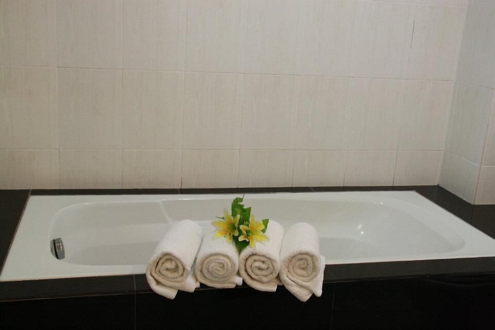 2) the bathtub is very high. so short people like us is quite difficult to climb in and out and there's no grip handles near. so it's quite dangerous for elderly. since the bathroom is big, it will be great if they can install standing shower. the basin pipe is spoil, so if you turn up for heavier flow of water, the water will spill from the pipe, causing wet floor. the bathroom room floor is very slippery too.