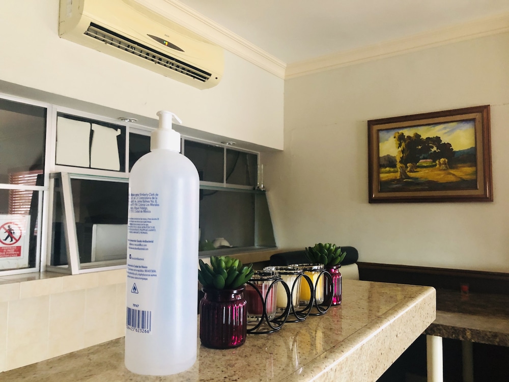 Guests are provided with free hand sanitizer
