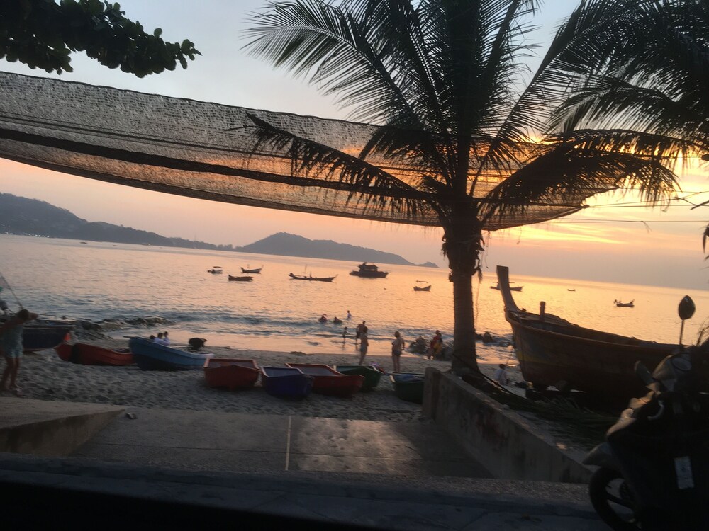 Description better than reality. On arriving was met by Peter who was friendly and check in easy. The room itself was small, the duvet had a burn mark on it and the bathroom smelled like sewage. The shower is right next to the toilet so not ideal for some. Clean towels though. Stayed one night only. Felt like a back packer place, but bar next door was full of old western men drinking beer, smoking and watching football. Dingy massage parlours on the door step. Karaoke in same said bar from 7:30 pm which was awful and really loud. Checked out next day with no refund offered, apparently because booked through Expedia. Unsavoury part of Phuket. Would not recommend it to others.