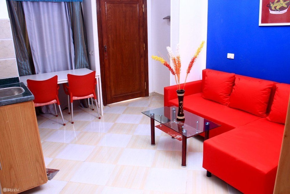 The place is very bad,insects and bugs everywhere inside and outside, the place has no staff except one called Mena, he close the door of the building at all times and in case if we want to exit or enter we must call on his phone to open the door, service is very bad, no air condition in living room.