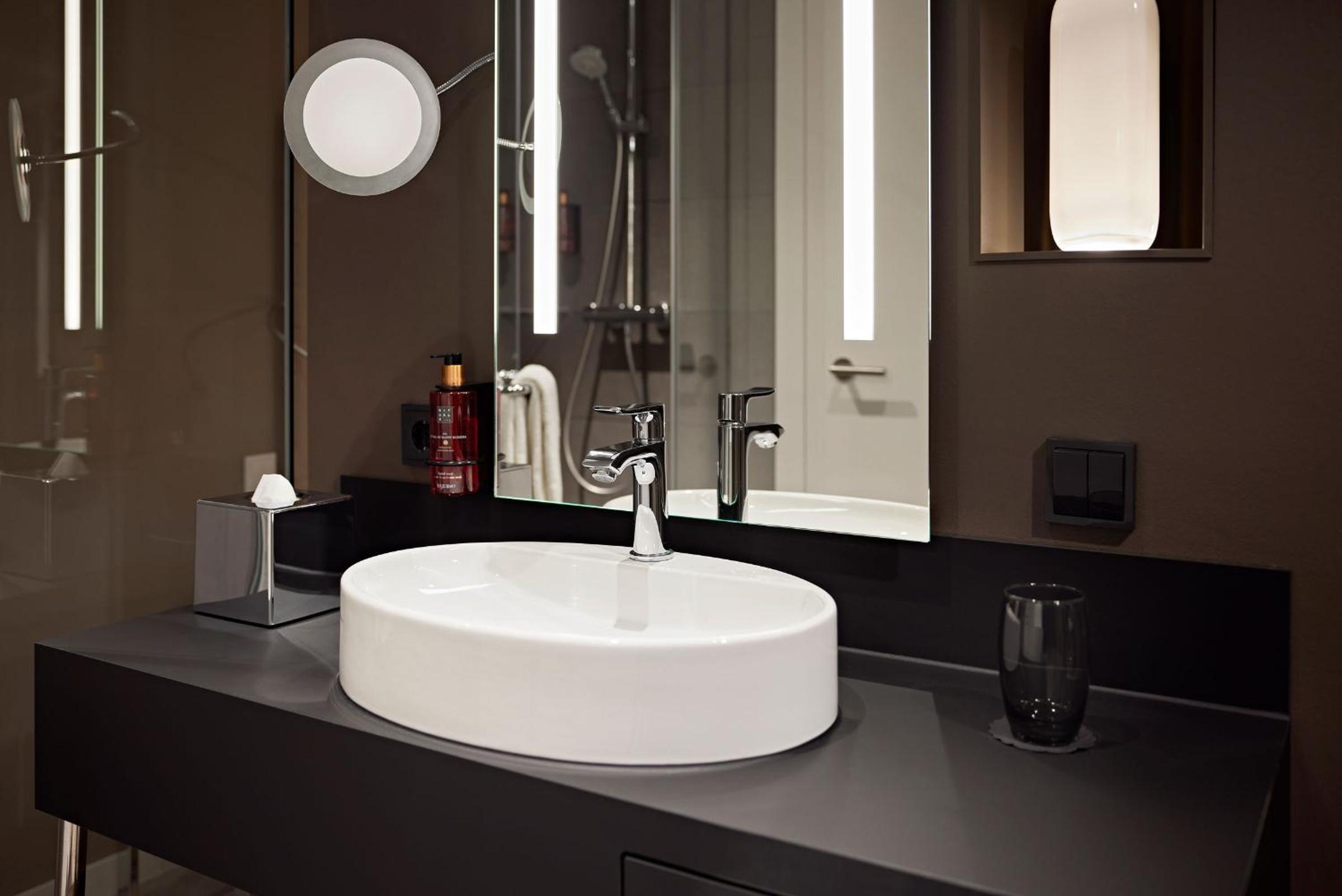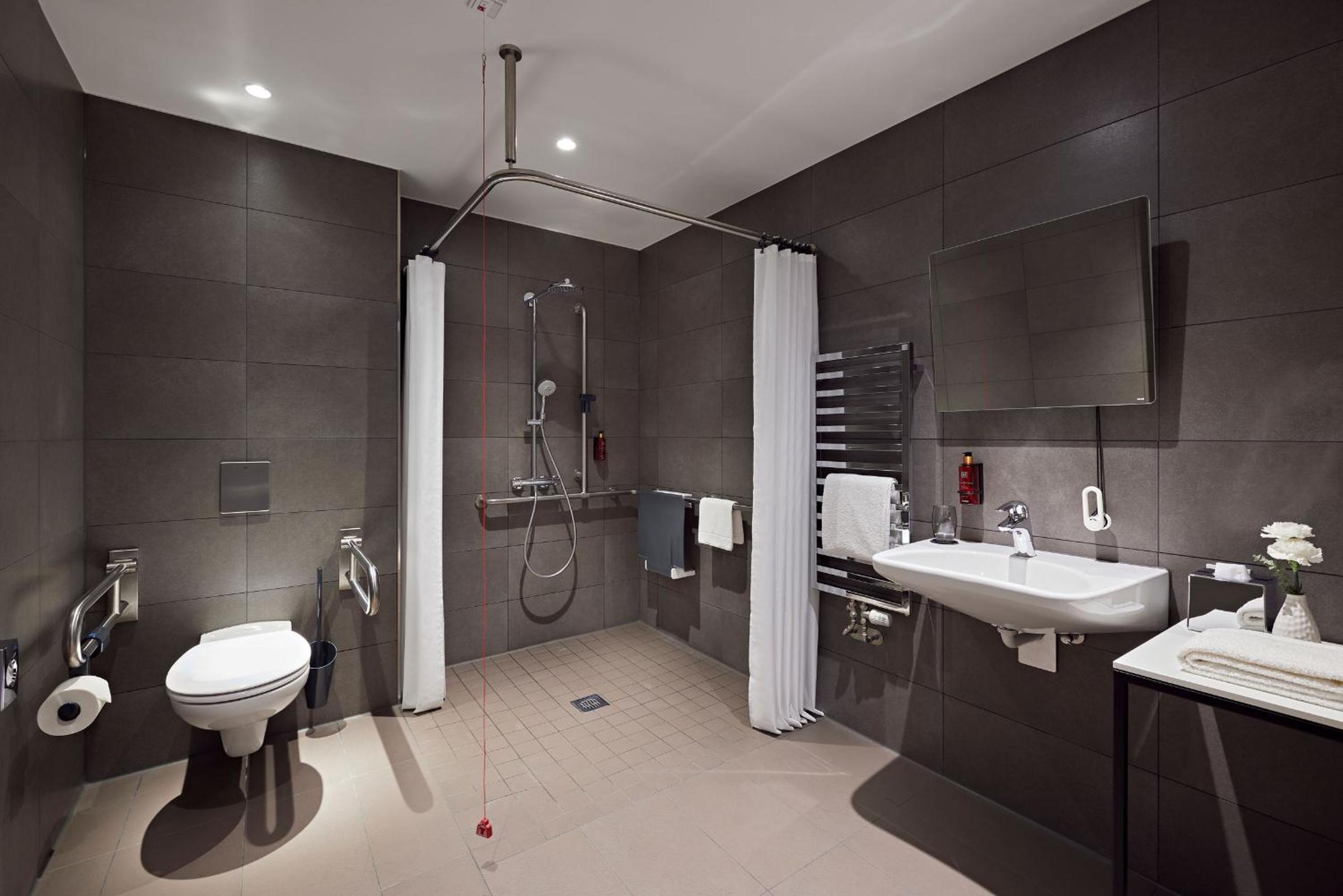 A beautiful and spacious room, clean. Spacious shower. Quality soap, showel gel, body lotion, shampoo, conditioner provided. An electric kettle and coffee machine, fridge. Very pleasant and helpful staff. A little shop in the lobby where you can get necessities you might have forgotten. Rich breakfast.