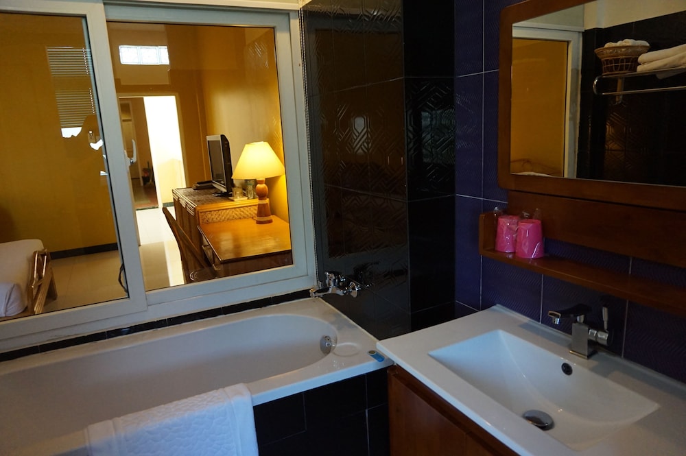 それ以外は、部屋は広く、籐の家具で統一されていて雰囲気があり、清潔で、静か。風呂場は広く、大きなバスタブがあり、日本人には最適。ロビーの構造から、何より安全。朝食も野菜がたくさん入った麺類がとても美味しかった。次もここに泊まると思いますが、コンセントを増やしておいて欲しい。
