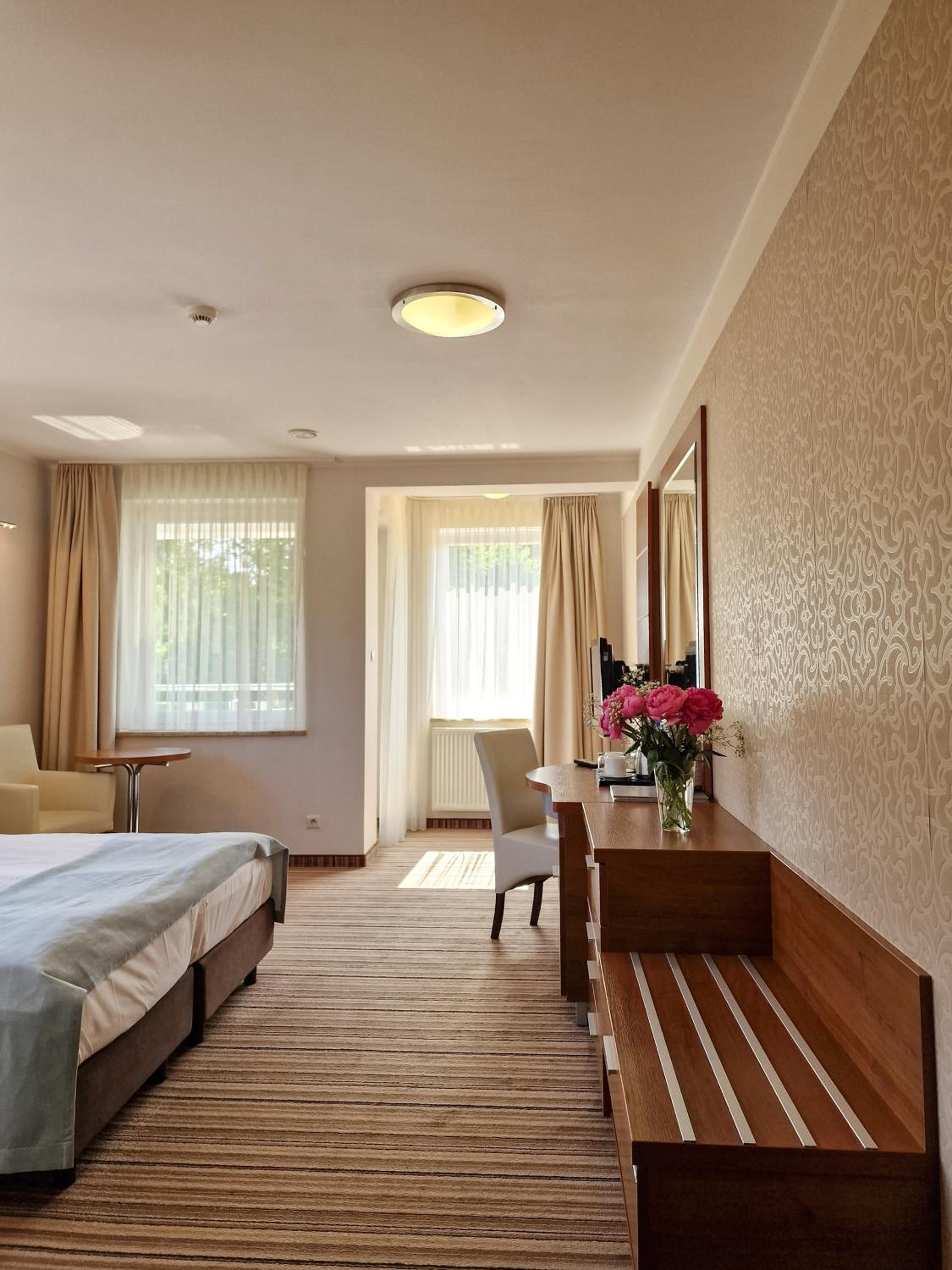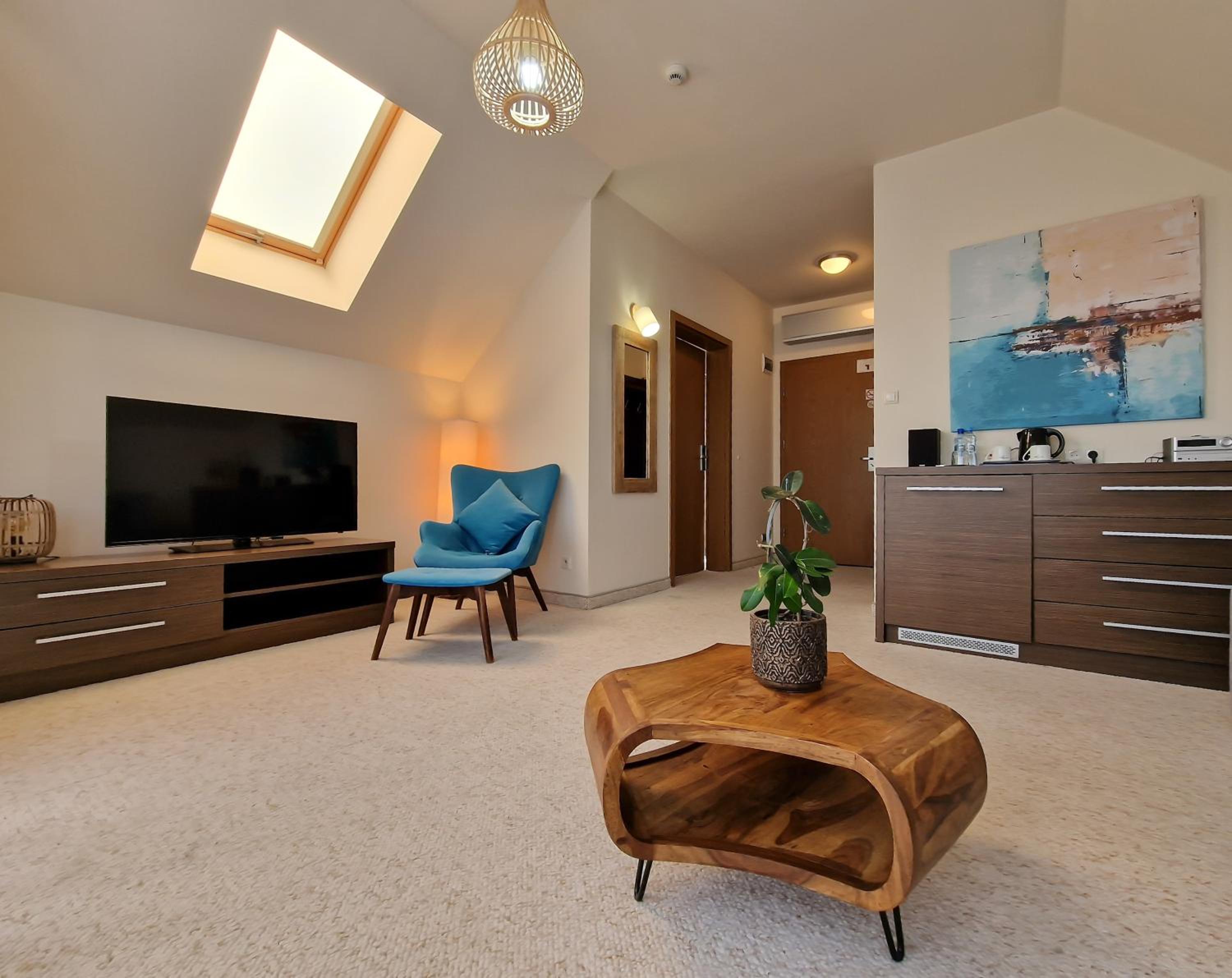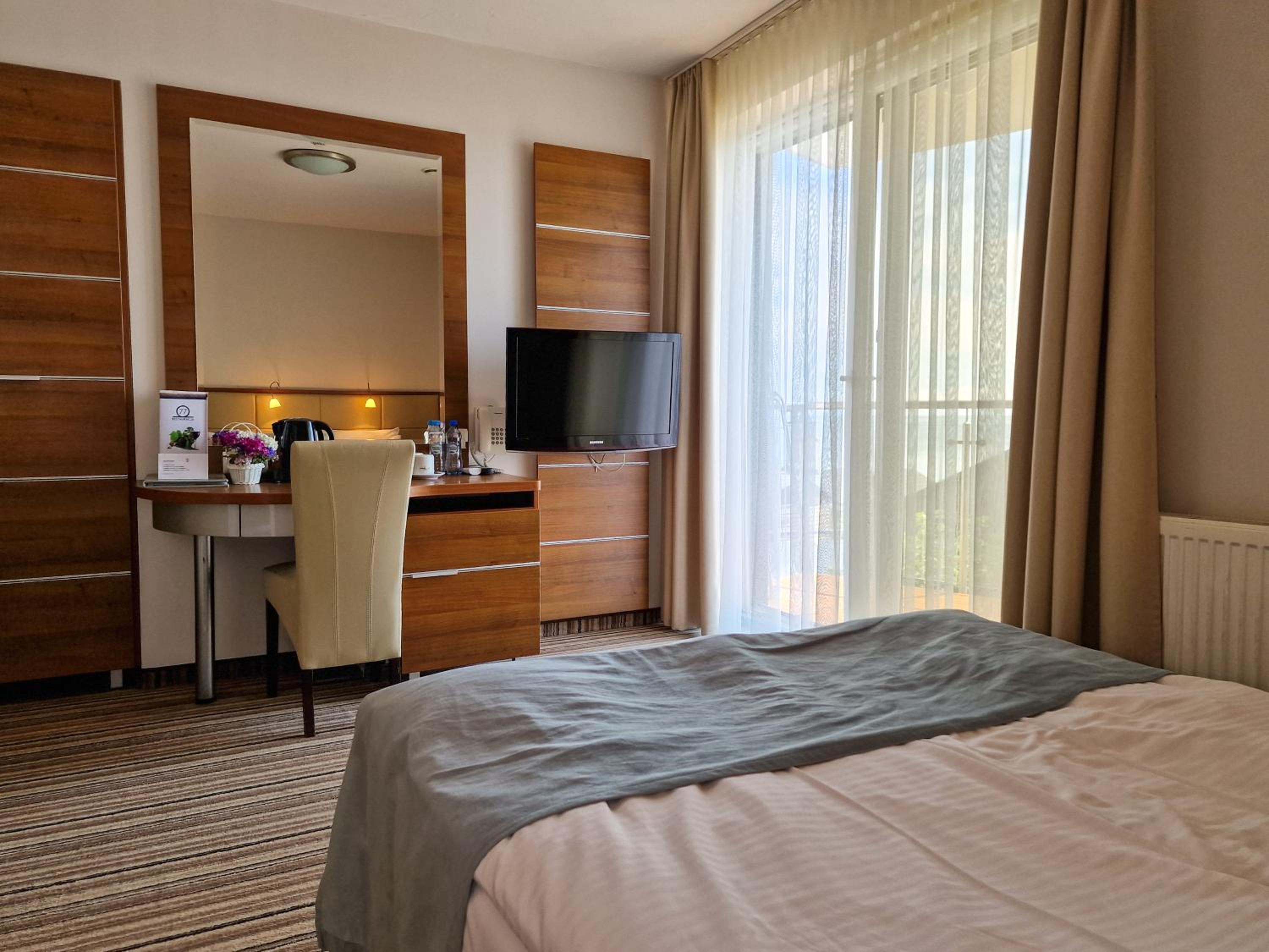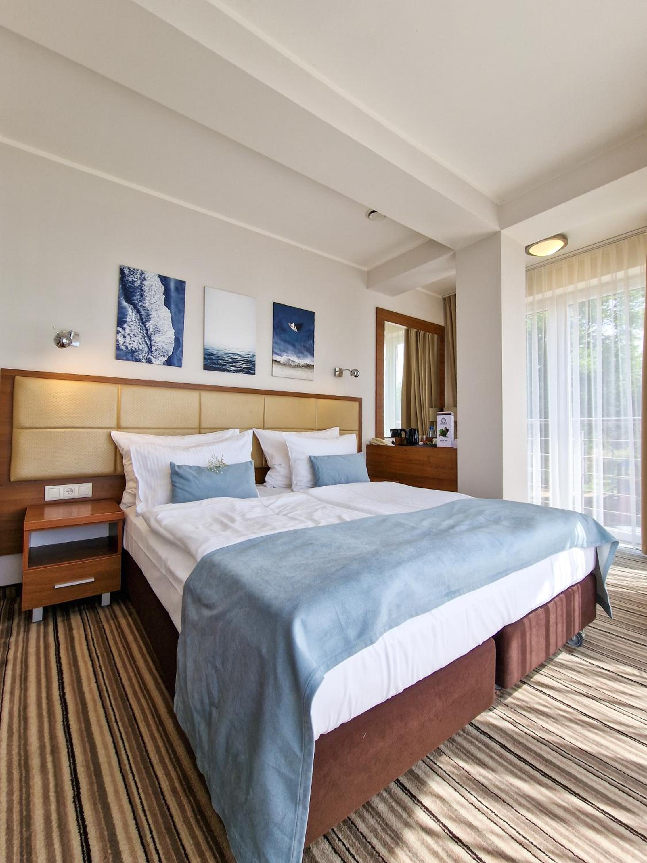 Hotel 77 Restauracja Spa in Chałupy offers elegant rooms with modern amenities and breathtaking views of the Baltic Sea or Puck Bay from private balconies. Each room is equipped with a flat-screen satellite TV, free Wi-Fi, and essential comforts like air conditioning and a laptop safe.