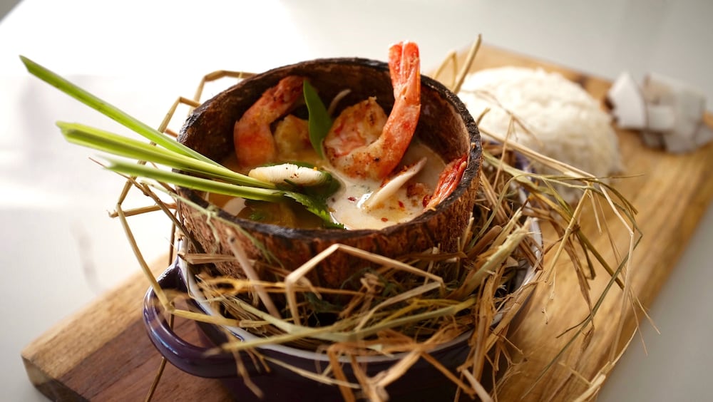 Chef is amazing, cooking us up some delicious food, Coconut Prawns &