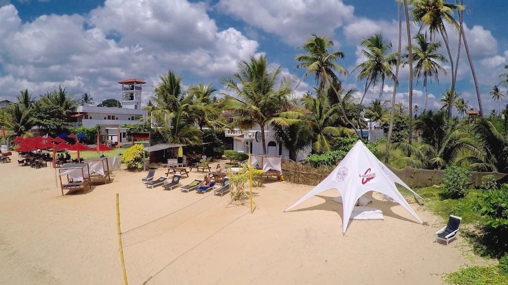 Staff were friendly and excellent. Very responsive. Great location right on beach. Food was always great. Excellent bfast selection. (Had amazing Singhalise curry) Hats off to the chef, can even do Shakshuka! Good surf spot, especially for beginners right in front of hotel. Can hire boards from guys next to hotel on beach for about 200 rupee an hour. Decent bar, but like everywhere in resorts in sri lanka, drinks and food are marked up in price substantially compared to buying outside. Rooms were comfortable with AC, hot water, comfy beds with mosquito nets. Small balcony can dry wet towels, boardshorts etc. I would stay here again, staff service is great. My only minor complaint is hotel arranged private taxi to Tissa which was over-priced by about 3000 rupees. Though to be fair it was our fault for not shopping around and checking with outside providers.