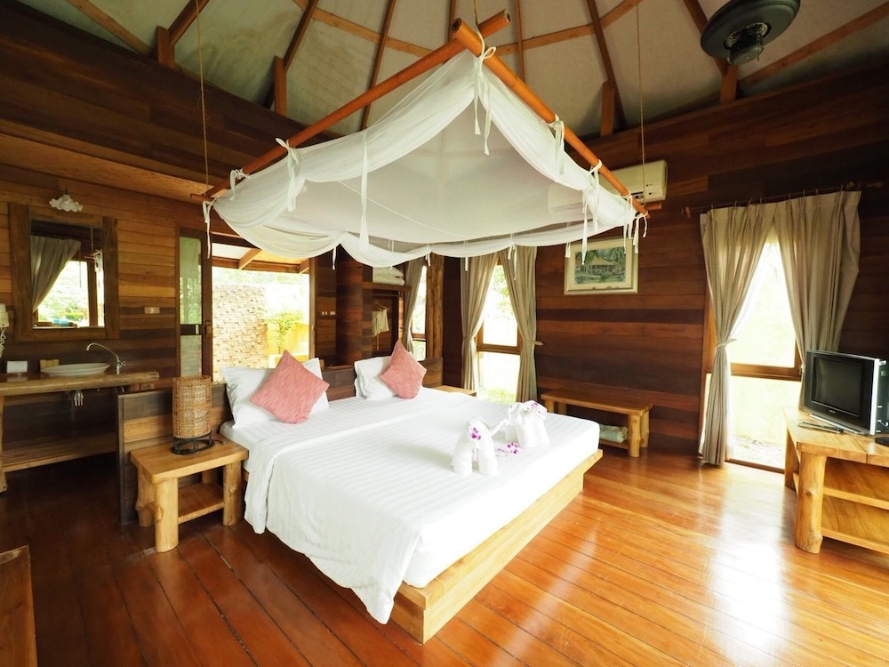 A la re eption personnel inefficace moqueuse et menteur. Nous avons pour une chambre a 2 lits avec coffre fort TV écran plat. La réception nous a dit que ça n'existait pas. Nous avons pu vérifier qu''il y avait des chambres correspondant à notre réservation. Nous n'avons pu obtenir satisfaction alors que la 1ere nuit Nous étions les seuls clients de cet immense ensemble. Mis à part les chambres qui sont typiques et spacieuses le reste est à l'abandon et dégradé. En résumé décevant dans un cadre enchanteur. Aucun gardiennage ni sécurité la nuit la réception ferme à 21 h. Heureusement sur ,la plage En face l'hôtel il y a un petit resto le khunyu qui prépare des petits plats thaï à des prix très raisonnables.