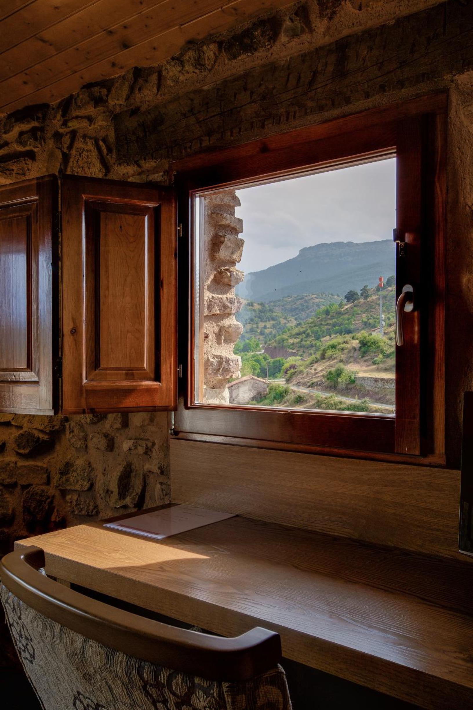 Rustic Elegance: The rooms at Posada Real La Almazuela blend modern amenities with traditional charm, offering a cozy retreat with stunning mountain views.