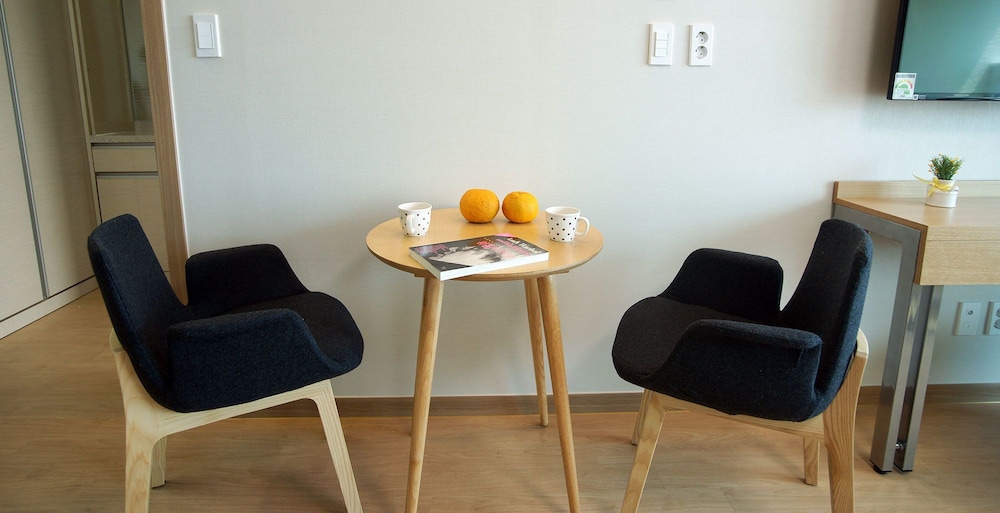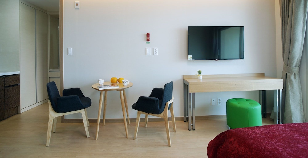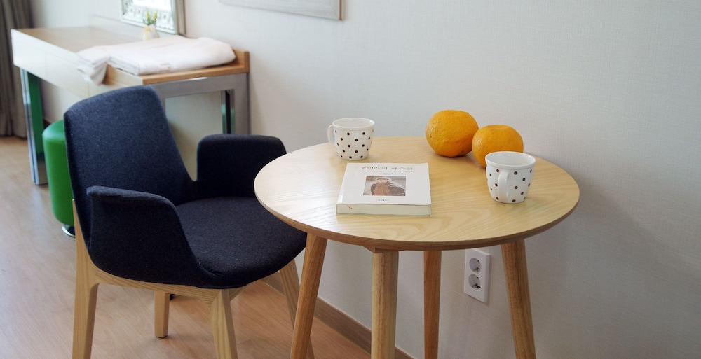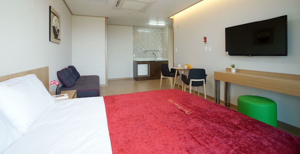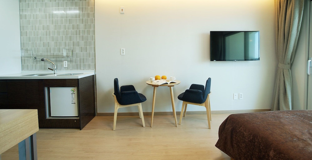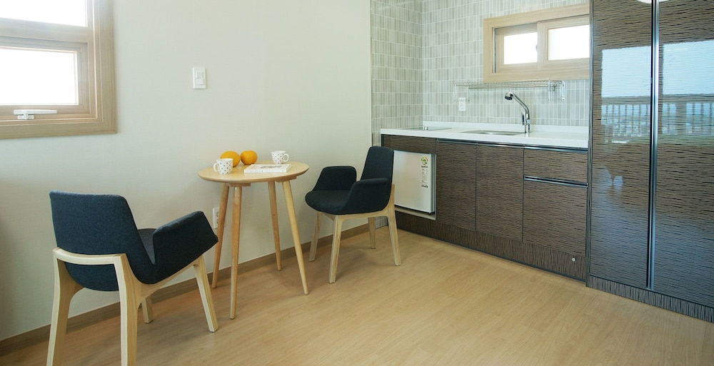 A perfect, relaxing stay with an amazing ocean view on one side and the beauty of Sanbangsan on the other. Bed, kitchenette, balcony, and an ensuite - there was nothing missing!