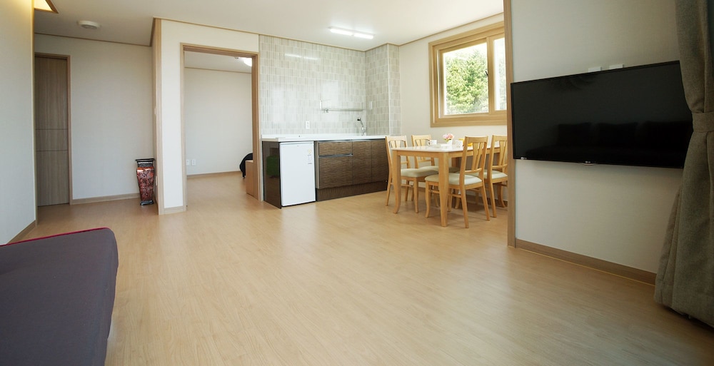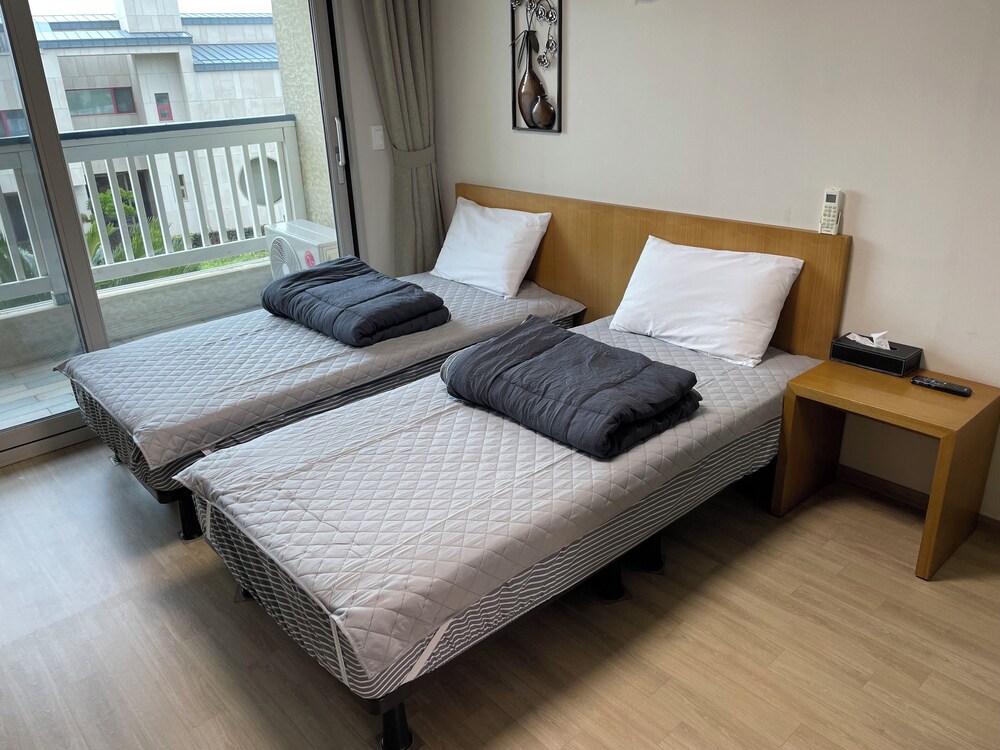 시설은 약간 오래된 모텔 같았지만, 나름 유지보수가 잘 되어 있었습니다. 숙박자가 많이 않아서 였는지 모르겠지만, 조용하고 편안하게 쉴 수 있어 좋았습니다. 사계해안, 형제섬, 송악산이 한 눈에 보니는 경관은 훌륭했고, 출입문을 열고 나왔을 때 바로 뒤에 보이는 산방산도 압권이었습니다. 조식도 가볍게 먹기에 충분했고요... 전반적으로 만족스러운 숙소였습니다.