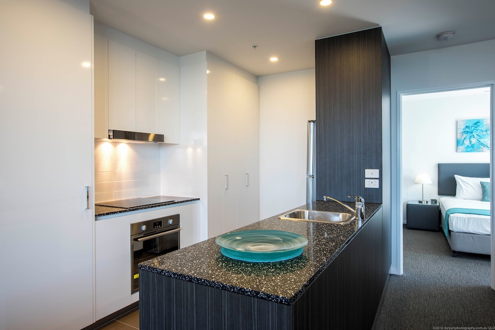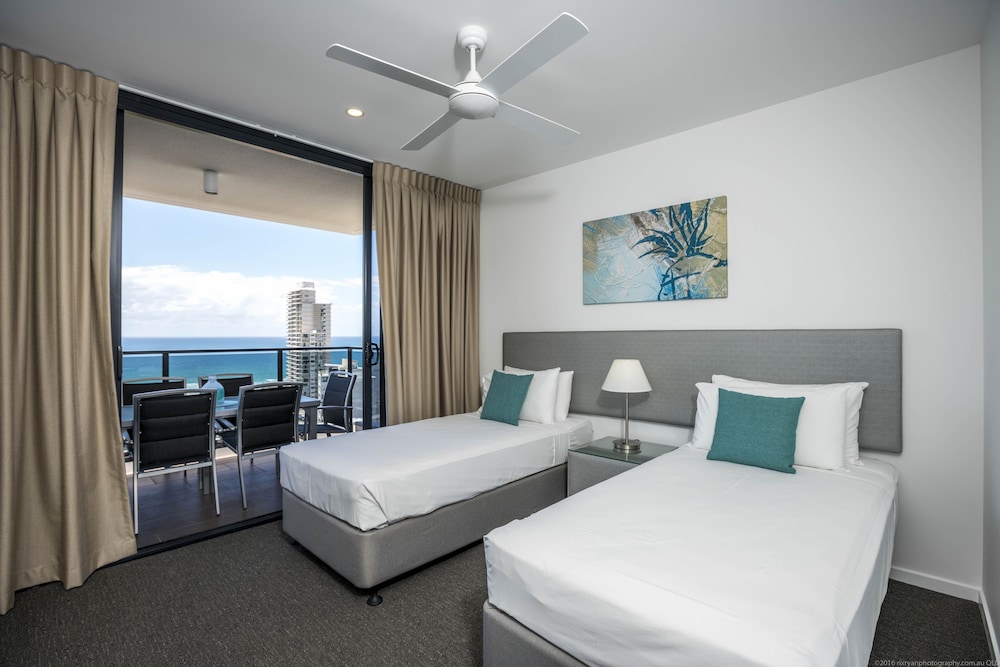 Staying at Synergy Broadbeach for about the 4th time and once again had a great time. The only downside was they had the window washers in and we could not use the pool until 3pm. Ordered a 2 bedroom ocean view room, which we got and on the 24th floor. The pleasent surprise was, we got an extra bedroom (sort of) which came in handy so my Mum did not have to share a room with my Daughter. The extra room however has no door and pretty much connected to the kitchen, but still was great to have that extra option.