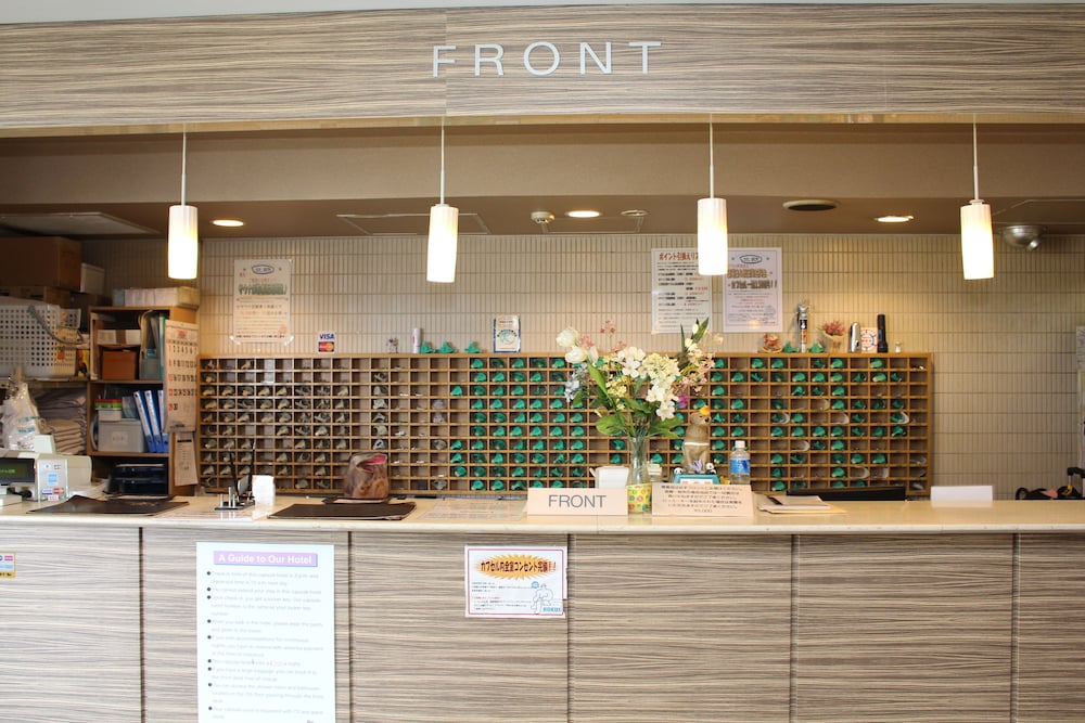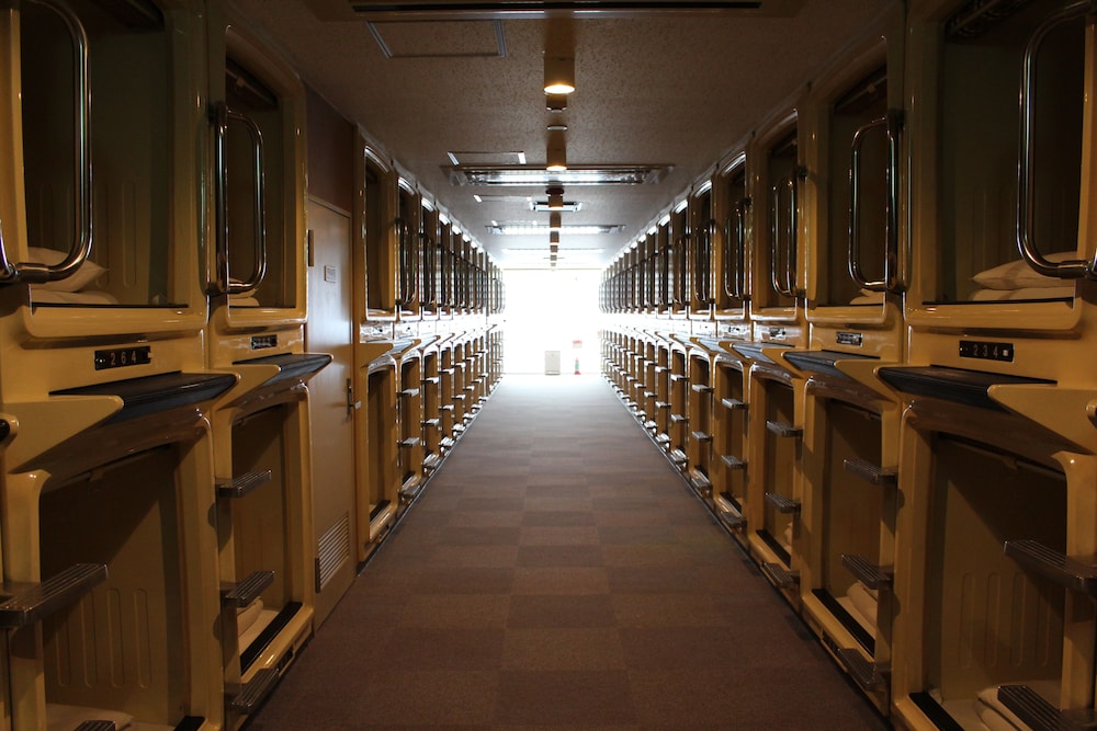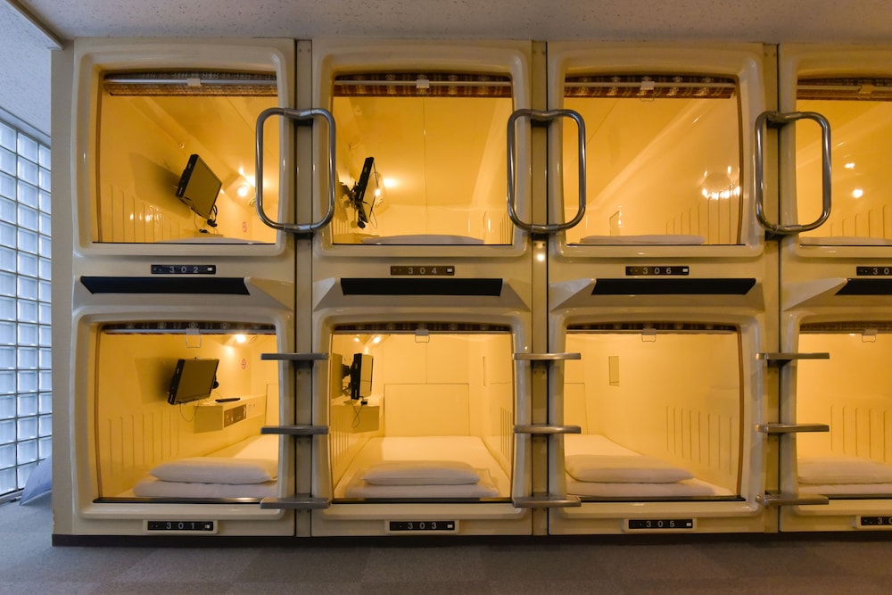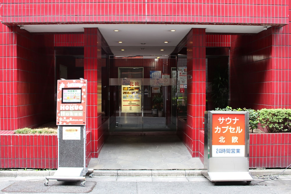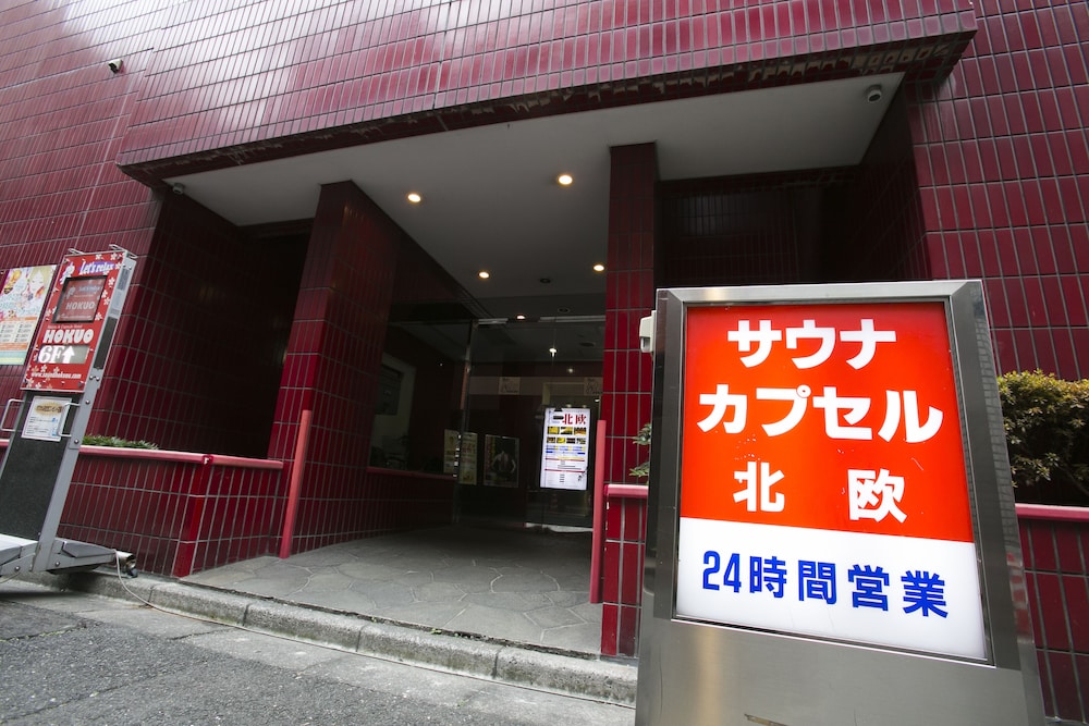 Without Google Maps would never have found it. No English signage, entrance looks more like an apartment, entrance in an alley, and front desk is on the top floor. You enter through 2 glass doors into a tiny lobby with 1 elevator with 1 floor button (6). Take shoes off shortly after elevator to arrive at the front desk. NO ENGLISH. Small capsules, noisy at times, and small lockers. On the plus side, nice hot tubs and sauna and bathing area with all toiletries supplied. Not meant for tourists, especially if you don't speak Japanese.