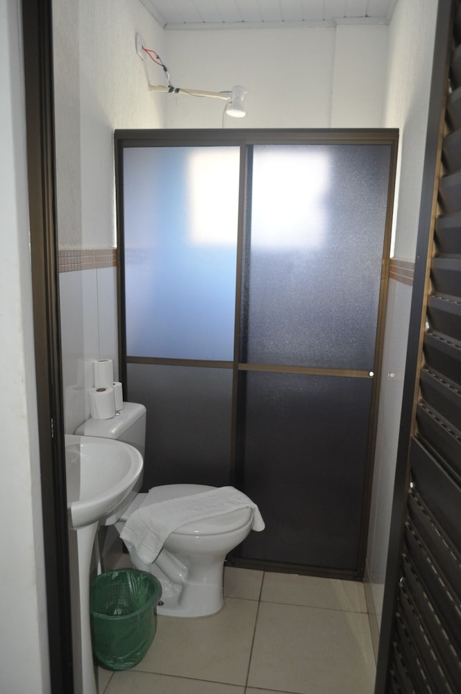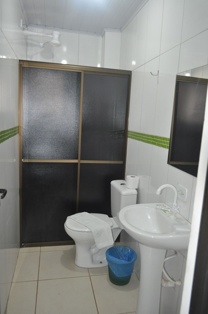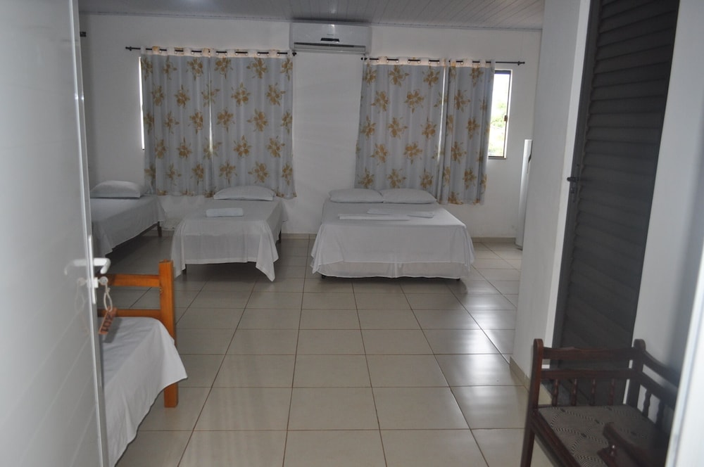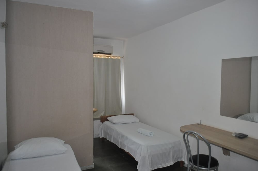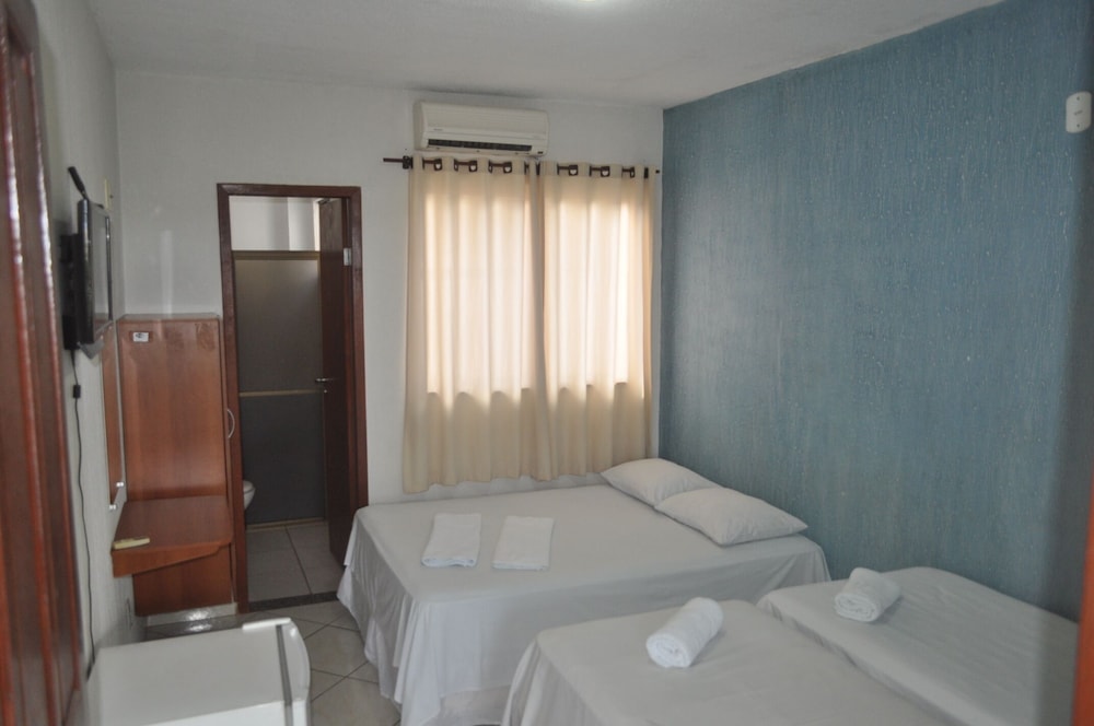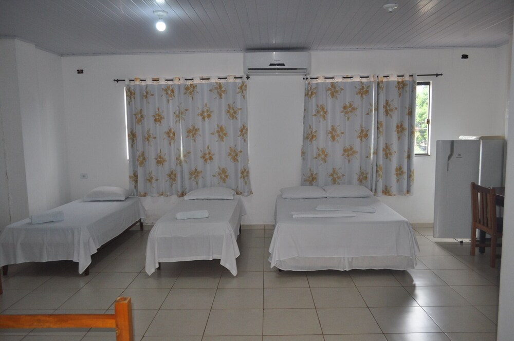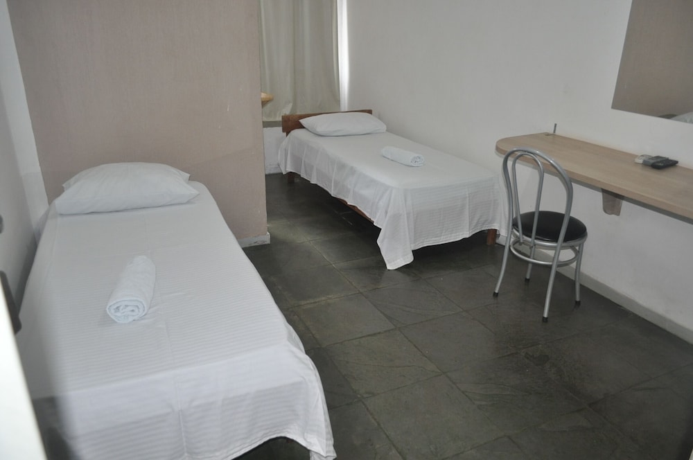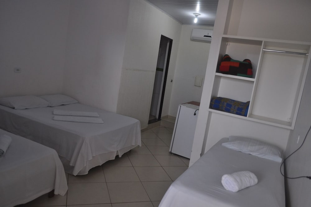 Por termos ficado em 4 pessoas em um quarto, ficou bem apertado, difícil locomoção dentro dele. Chuveiro ok. Café da manhã bacana, achei o pessoal meio frio, mas também não fiquei puxando assunto. A limpeza do quarto deixou bem a desejar, principalmente o chão. As toalhas foram postas de maneira muito organizada e limpas, mas não são trocadas diariamente. Minha namorada achou que pelo preço por pessoa o pernoite ficou caro, mesmo tendo sido o local mais barato que encontramos. Eles estão reformando e provavelmente construindo uma piscina ou algo do tipo. O bom foi que praticamente não ficamos no quarto, mas enquanto estávamos lá senti falta de móveis para me organizar, e olha que viajo com bem pouca coisa, claro que a ida ao Paraguai faz você voltar lotado e aí gastei muito tempo tentando me organizar no quarto pequenino. Achei as camas meio desconfortáveis também.