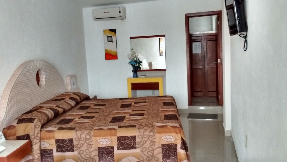 un buen hotel con buena ubicacion, habia leido malas reseñas pero todo me parecio bien, solo fui yo que olvide poner que llevaba a mi niña de 10 años y cobraron 300 por ella que es baratisimo ya que en otros casi 600 por añadir a un niño. una cama amplia el clima frio, si hay agua caliente y pues la alberca, todo nos parecio bien en este hotel, aparte que venden cerveza y comida.