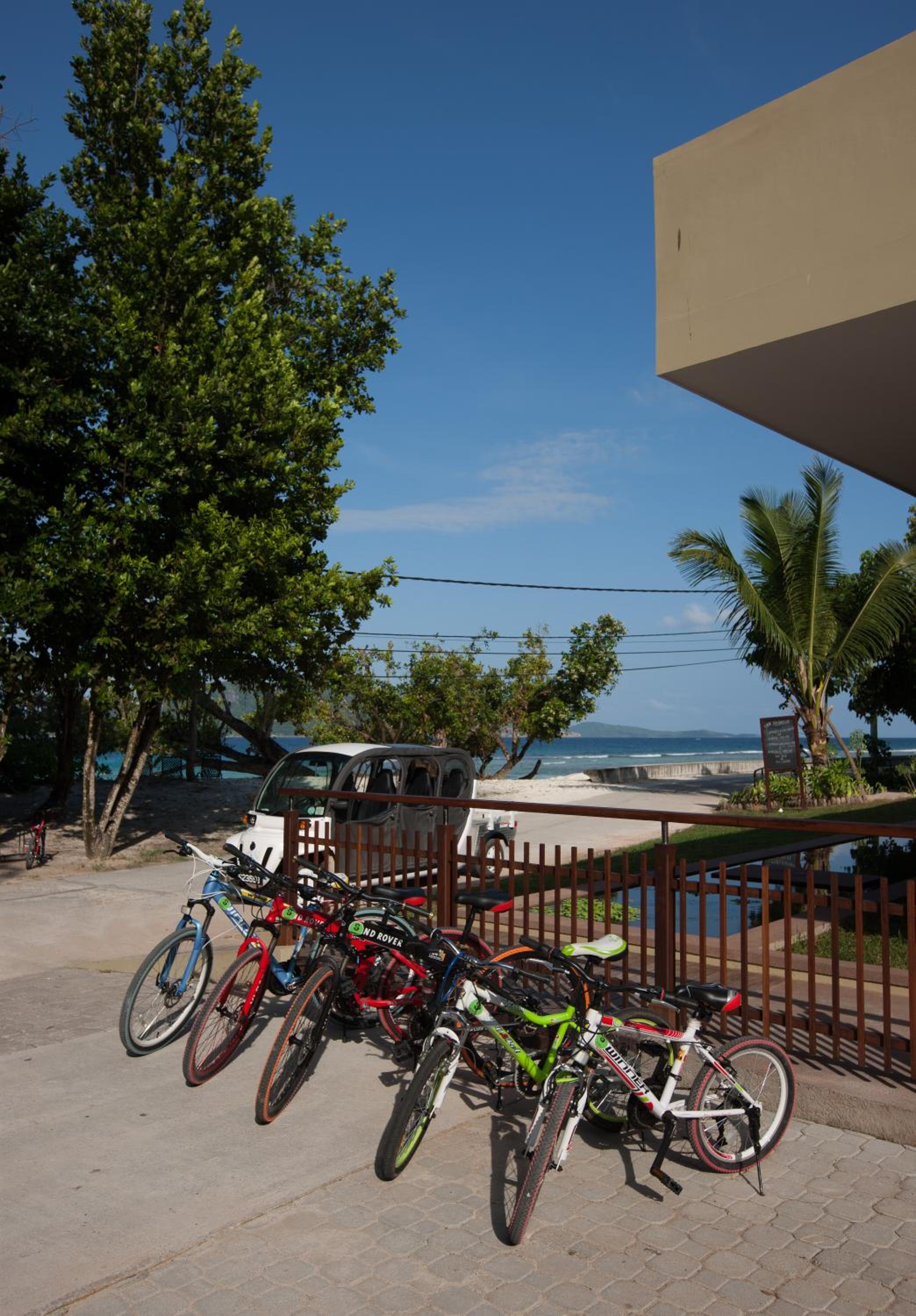 . The beach is less than a minute away from the lodge and is simply gorgeous and empty of people ;). Only a few minutes’ walk away is one of the most beautiful beaches we have found (Anse Pate Beach), with probably the most photographed palm tree in La Digue. The waves can be a bit rough, but it pays off hundreds of times over. The room in the hotel was large and well-furnished. For breakfast, you could choose between an Intercontinental and an Indian breakfast. The. Indian breakfast takes a little longer to be ready. From the hotel to the harbor, it is about 20 minutes by bike. You can borrow bikes from the hotel, but they are without lights, so we rode through the night on the way back. It's best to pack a headlamp.