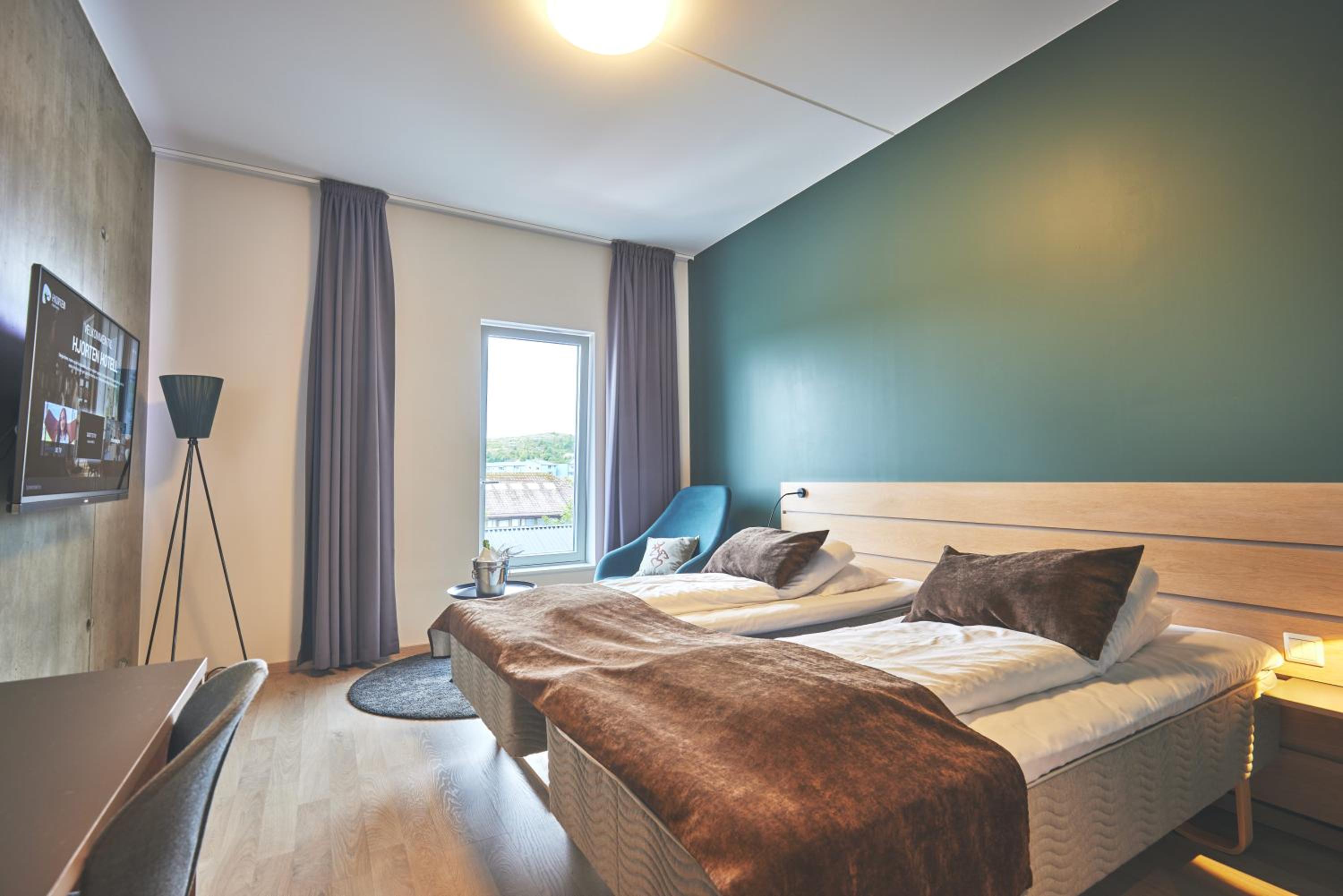 Each room at Hjorten Hotell Hitra is equipped with a flat-screen TV, a seating area, a kettle, and complimentary toiletries. The inclusion of a hair dryer adds to the convenience, ensuring a pleasant stay for all guests. Moreover, the free WiFi available throughout the property allows for seamless connectivity.