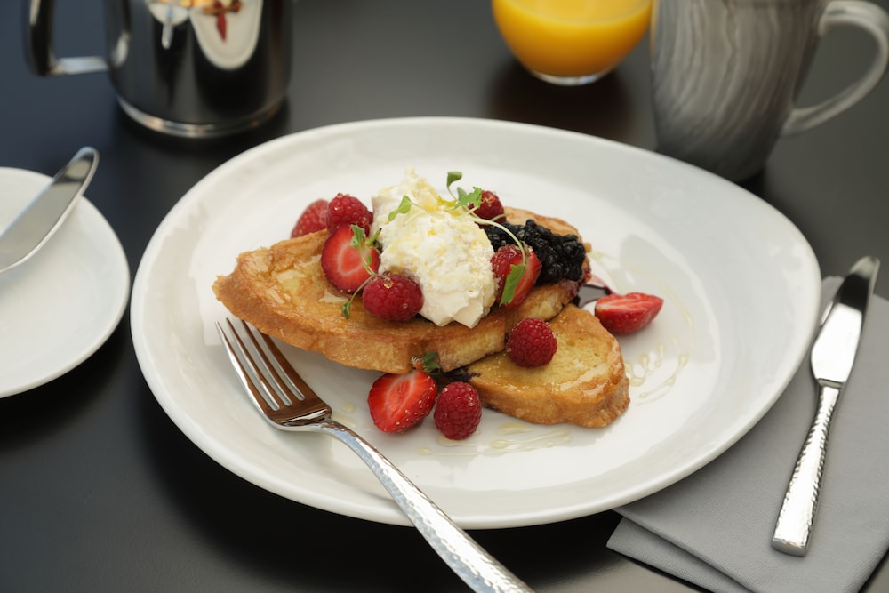 Indulge in delectable meals at our on-site restaurant or enjoy the convenience of in-room dining, paired with a daily complimentary full breakfast to fuel your adventures.