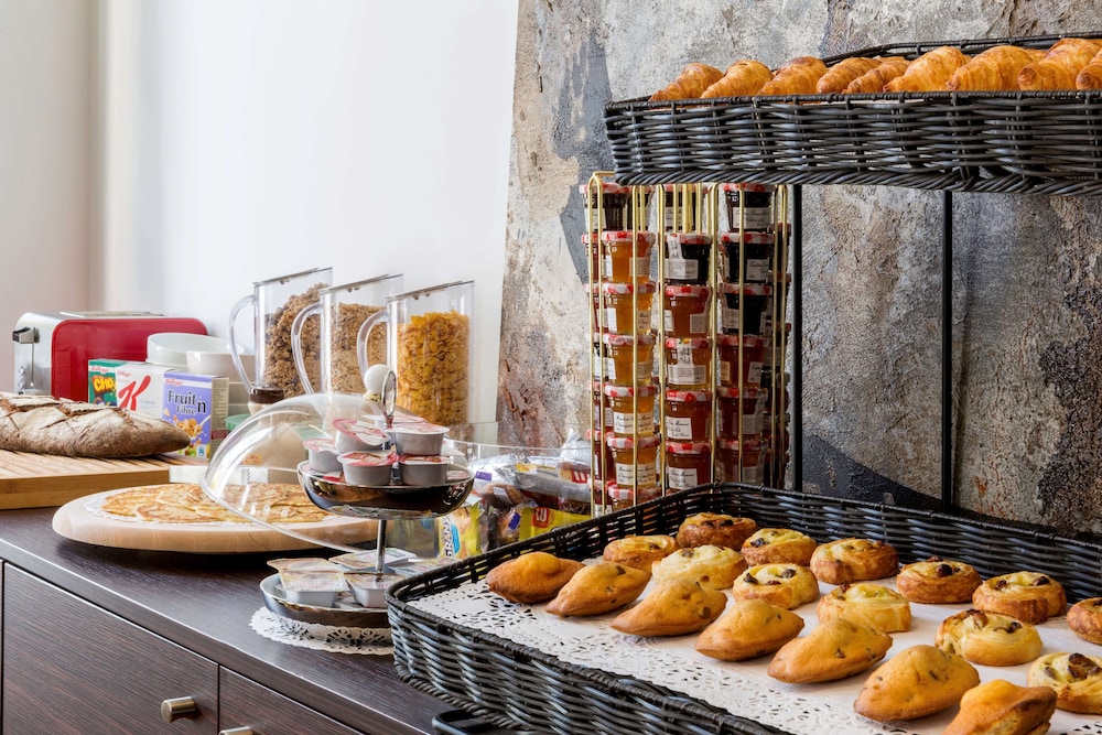 Hotel is lovely and had nice room amenities. Location is ok- needed to drive to metro to get to train for city center, which was only a 20-30 trip. Staff was friendly however desk clerk was very aggressive about trying to book us to dinner at hotel restaurant each night which we declined due to limited selection. Breakfast was great with lots of choices between hot and cold, sweet and savory dishes.