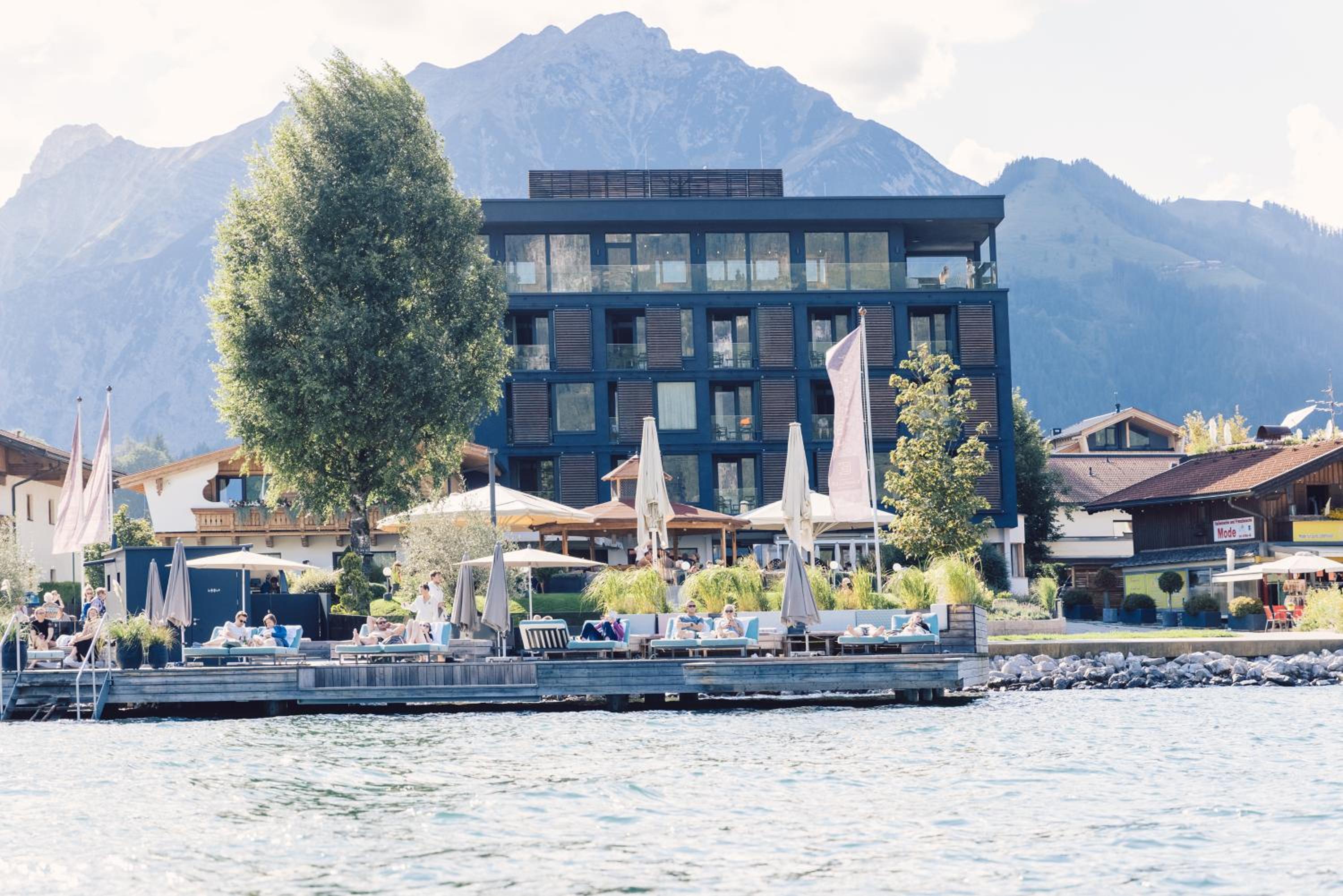 Die Lage des Hotels ist einzigartig, direkt an der Seepromenade mit Blick auf den See und mit eigenem Badesteg.