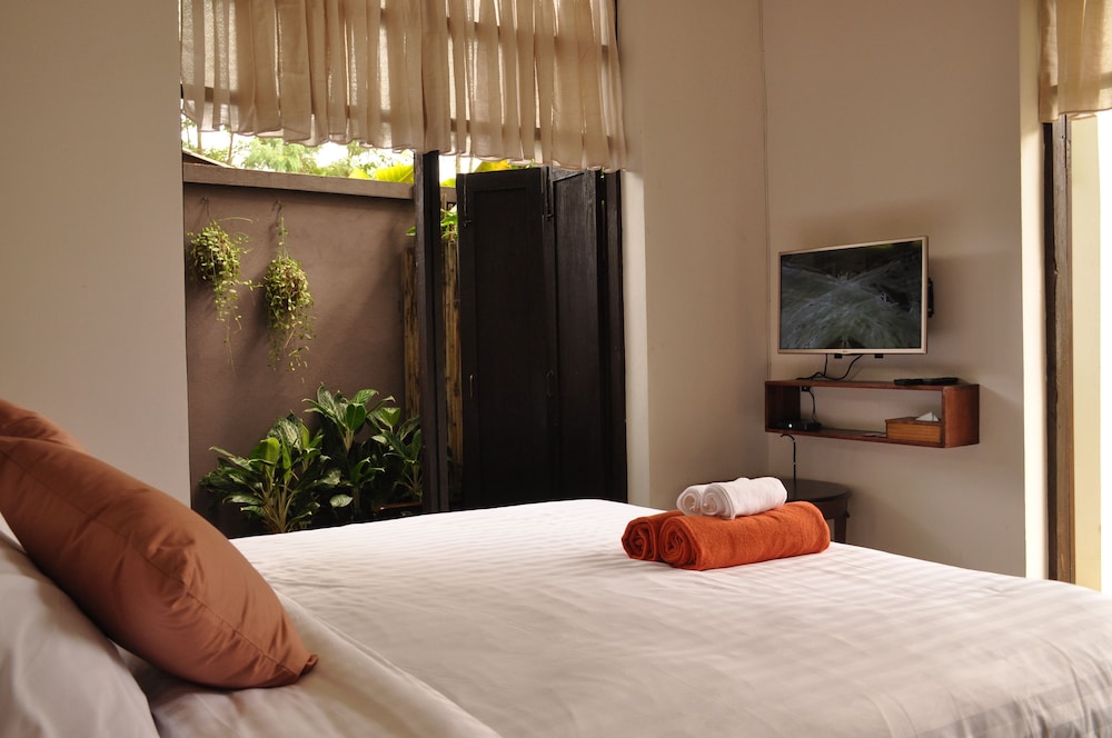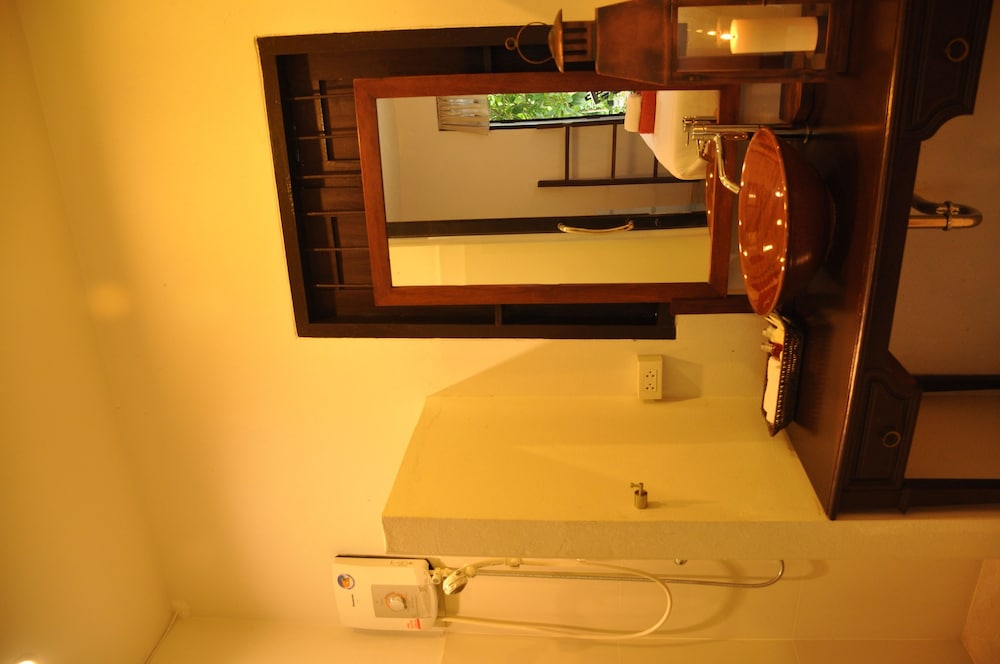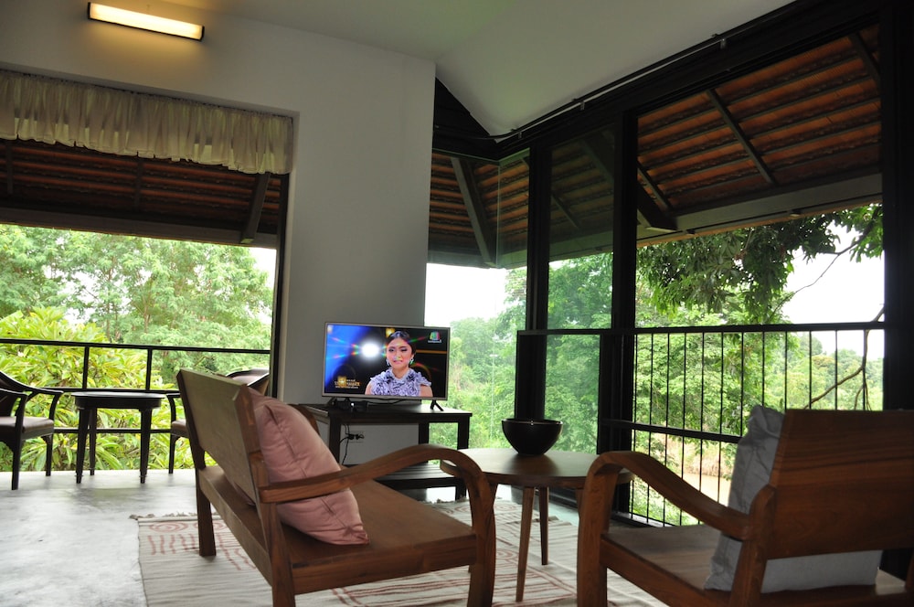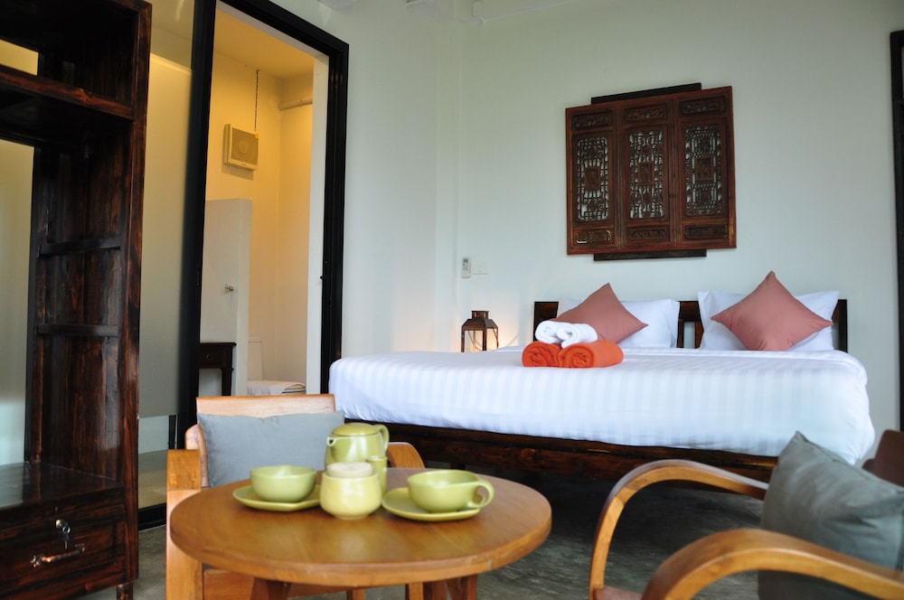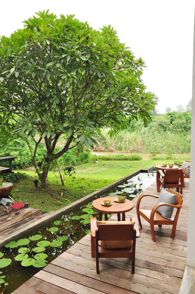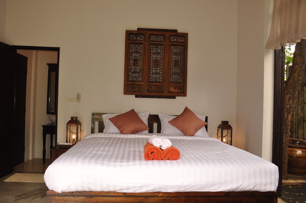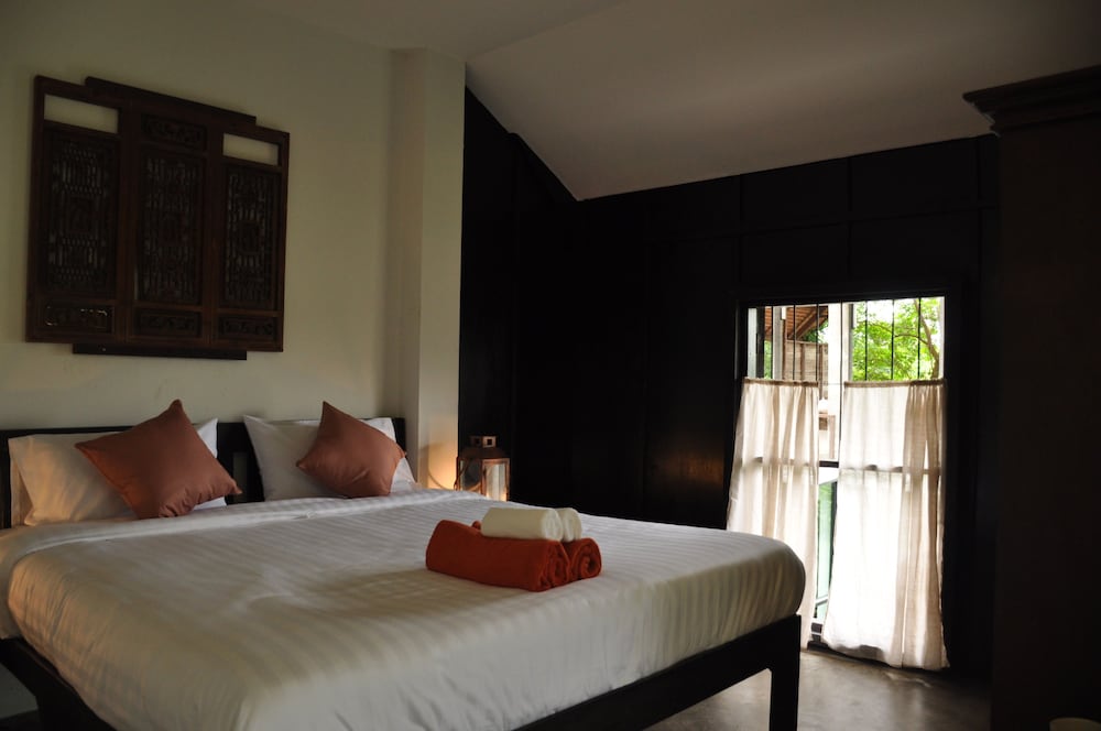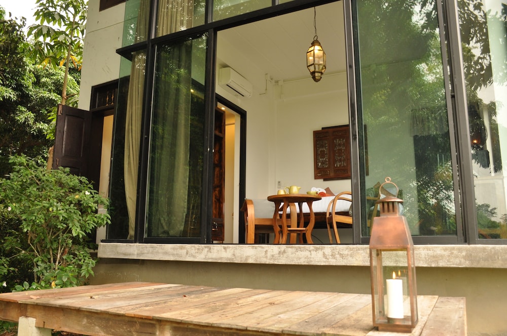 This is a beautifully designed small guest house in a remote but beautiful location. The housekeeper who speaks Thai talked through a translation app but was lovely friendly and helpful. I had a little difficulty as the owner had told her to put me in the wrong room, but I did get moved. The room with the terrace or the balcony facing the river are best. The basic room has no windows. There is no food so bring your own and bring in a very rural location it’s a bit buggy. But on the flip side the wildlife, design of the garden and river access were second to none.