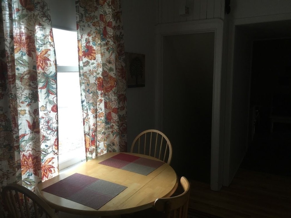 Tiny room. Place feels like you grandma's home, or what I imagine a hostel is like. Quaint, but hiusekeeping is sub-standard. Bathrooms are shared. Has a coffe maker in the shared kitchen but no stir sticks. No dishes no sink in sharef kitchen. Broken mirror in one of the shared bathrooms. People can see you while on the toilet due to insufficient blinds. Not renovated substancially in forever. Rooms / walls are not sound proof. No one on site for much of evening, night and morning if you need something. No place to put clothes. Towels put on chair in corner of room behind door. Stairs not shoveled after snowfall. Room over bar so music is noisy from early until late. Had some messy and loud guests stay at the same time as me so it makes for an altogether unpleasant stay. Far from civilization (ev chargers), if that is what you are looking for. Seems like a cheap place to stay overnight while on a snowmobile /quad / hunting trip, but nothing more.