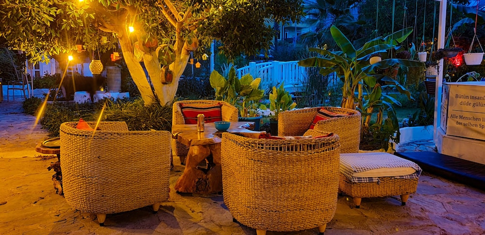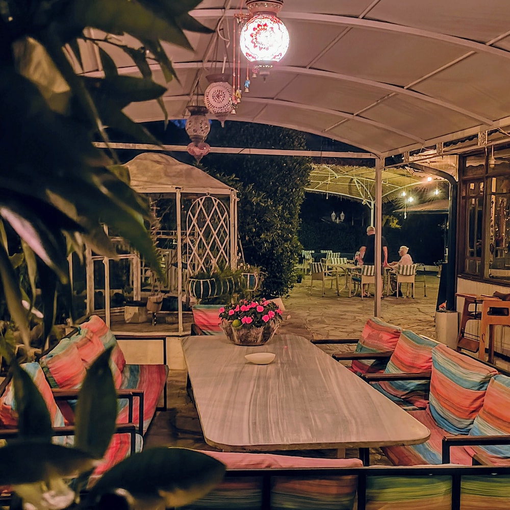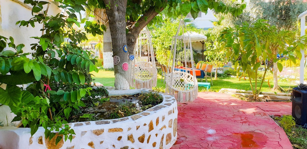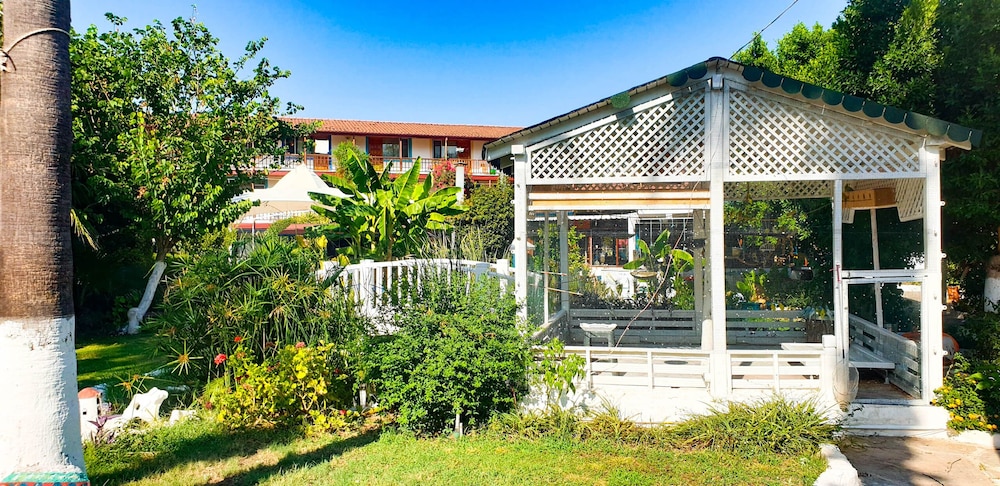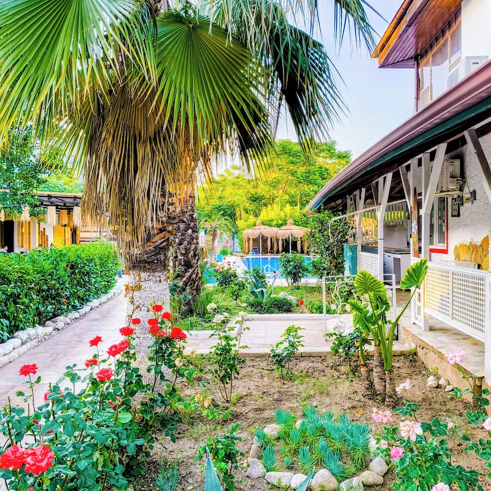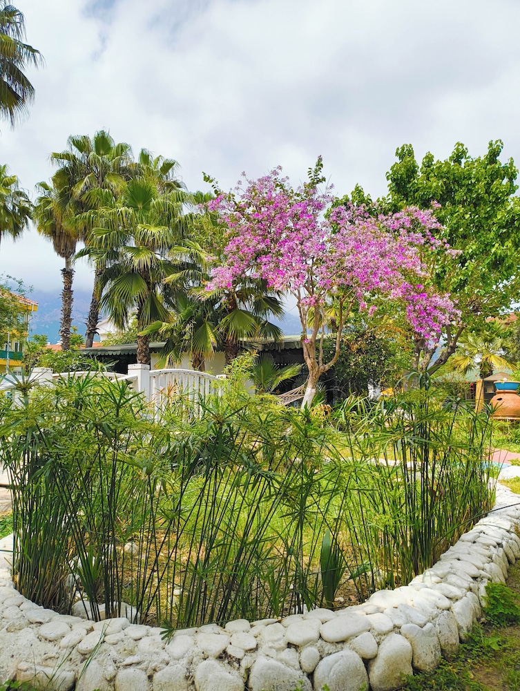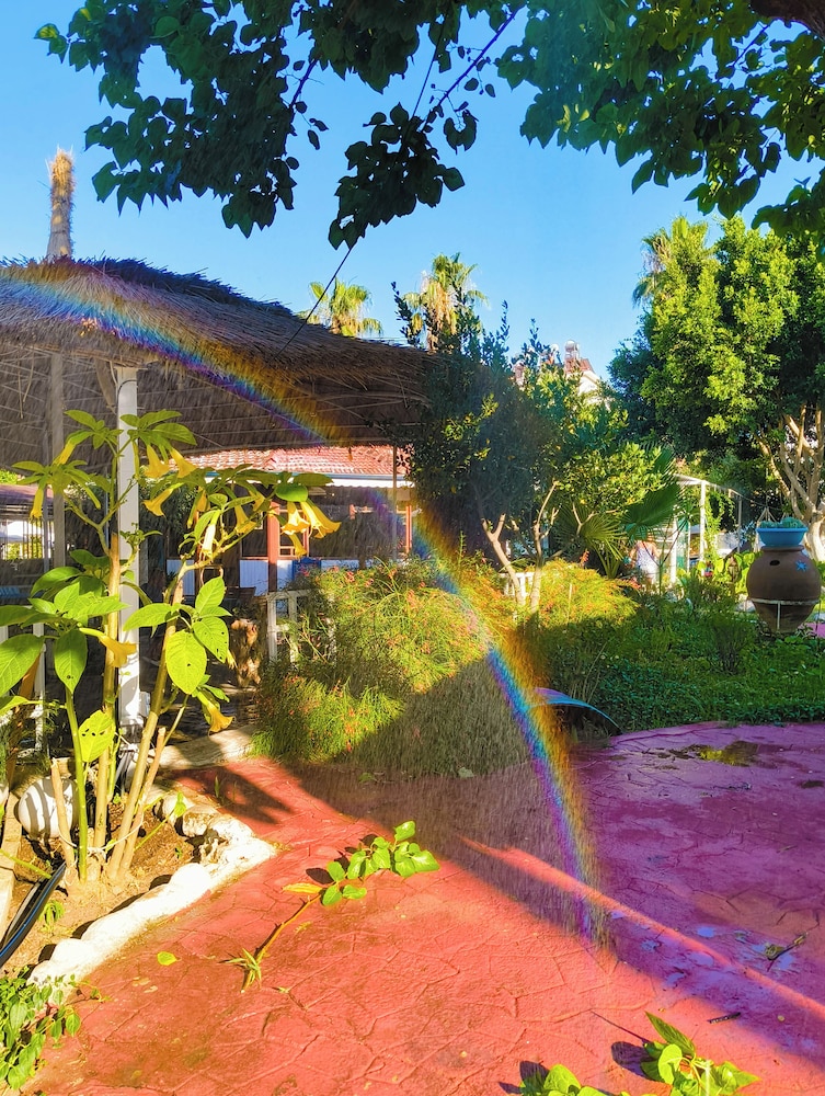 Doğa ile içiçiçe,her taraf yemyeşil,muhteşem,dünlendirici.huzur verici bir bahçe.Yeşillikler içerisinde gönül rahatlığıyla girebileceginiz tertemiz bakımlı bir havuz.Çalışanlar güleryüzlü.Gelen misafirler genelde alman,avrupalı,kaliteli insanlar.İkinci gelişimiz.Oteli işleten Erendiz hanım çok kültürlü ,birikimli.entellüktel biri sohpeti de oteli kadar keyif verici.Dinlenmek,ve huzur verici bir tatili tertemiz pırıl pırıl doğa ile içiçe geçirmek istiyorsanız kesinlikle pişman olmazsınız.