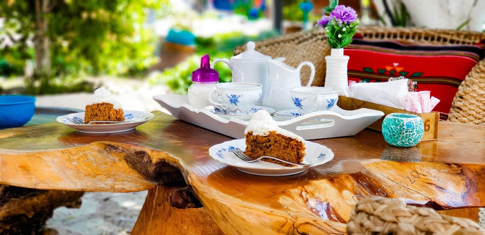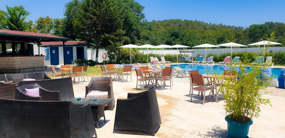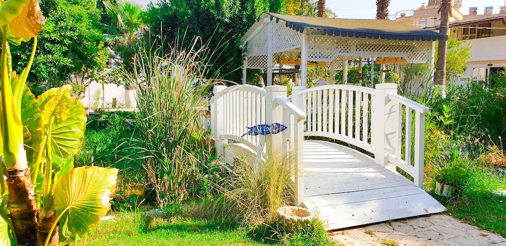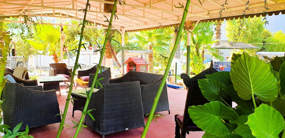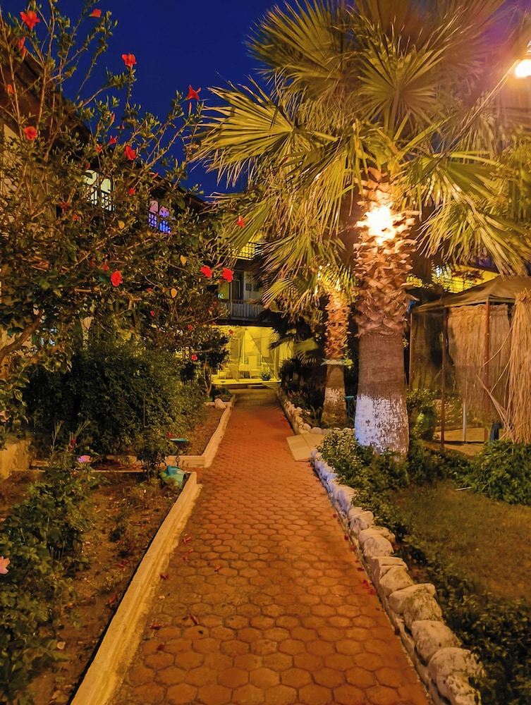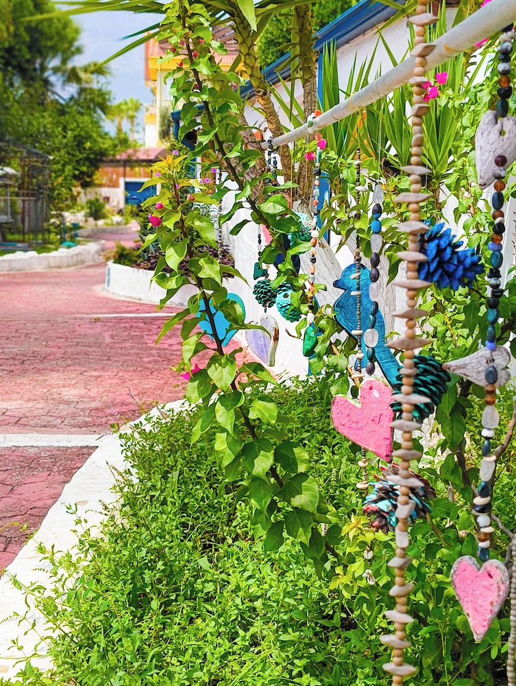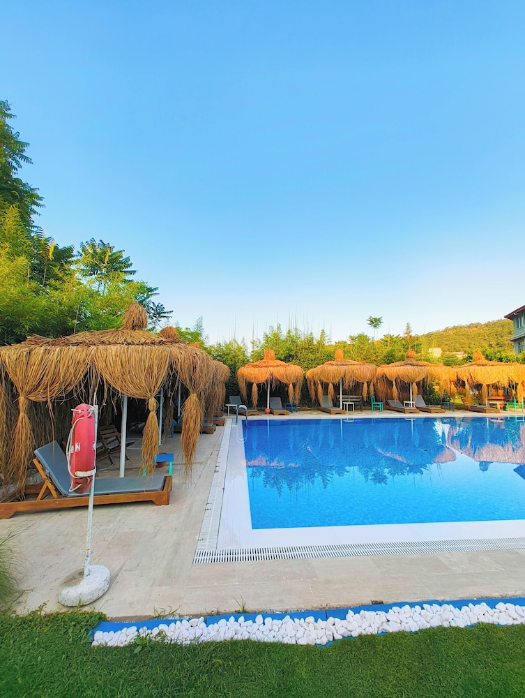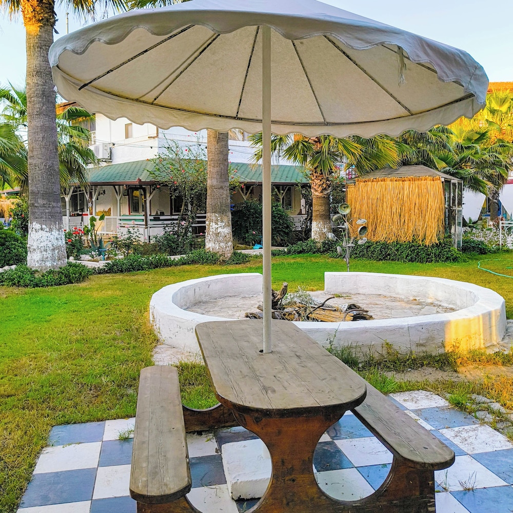 Doğa ile içiçiçe,her taraf yemyeşil,muhteşem,dünlendirici.huzur verici bir bahçe.Yeşillikler içerisinde gönül rahatlığıyla girebileceginiz tertemiz bakımlı bir havuz.Çalışanlar güleryüzlü.Gelen misafirler genelde alman,avrupalı,kaliteli insanlar.İkinci gelişimiz.Oteli işleten Erendiz hanım çok kültürlü ,birikimli.entellüktel biri sohpeti de oteli kadar keyif verici.Dinlenmek,ve huzur verici bir tatili tertemiz pırıl pırıl doğa ile içiçe geçirmek istiyorsanız kesinlikle pişman olmazsınız.