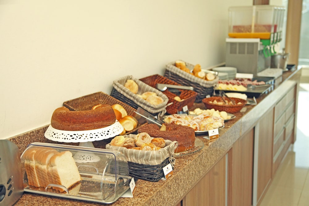Hotel bem condizente com o custo x benefício. Atendimento bom, cafe da manha saboroso e farto. Quarto com mesa e cafeira para trabalhar. Local silencisoe proximo ao mercado.