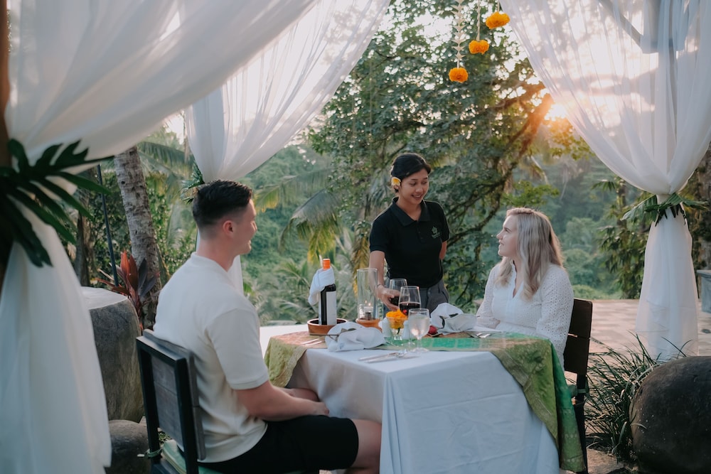 Beautiful view of the forest from the breakfast/dining area. Very walkable to the main areas in Ubud (Palace, Monkey Forest, Rice/Ridge walks, etc.).