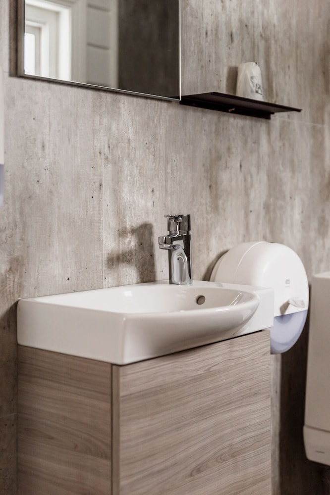 Her har noen løftet campinghytte-konseptet til nye høyder ved hjelp av enkle grep om innredningen, gode senger og sengetøy, og smarte miljøtiltak. Skumsåpe-dispenserene fungerer overraskende veldig bra. Sparedusjen sparer ikke for mye av det varme vannet.