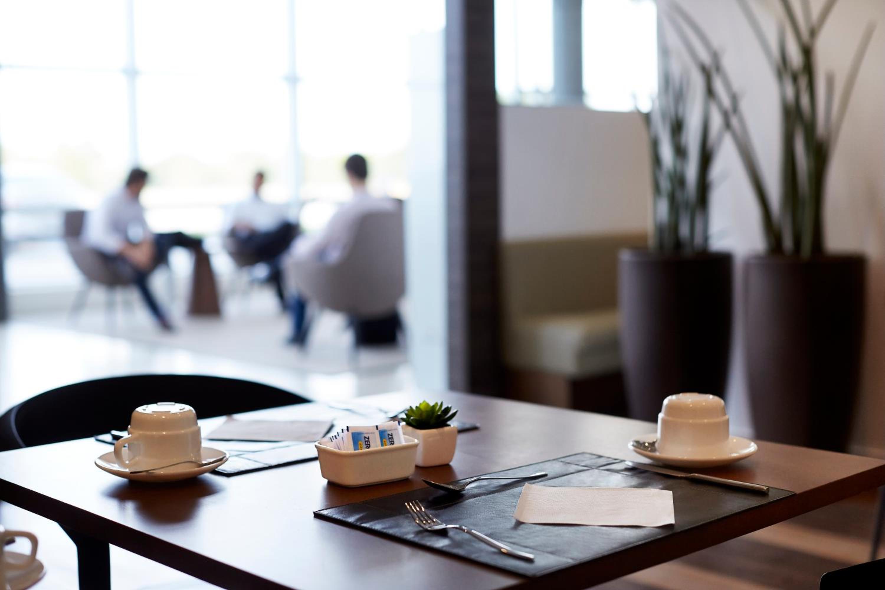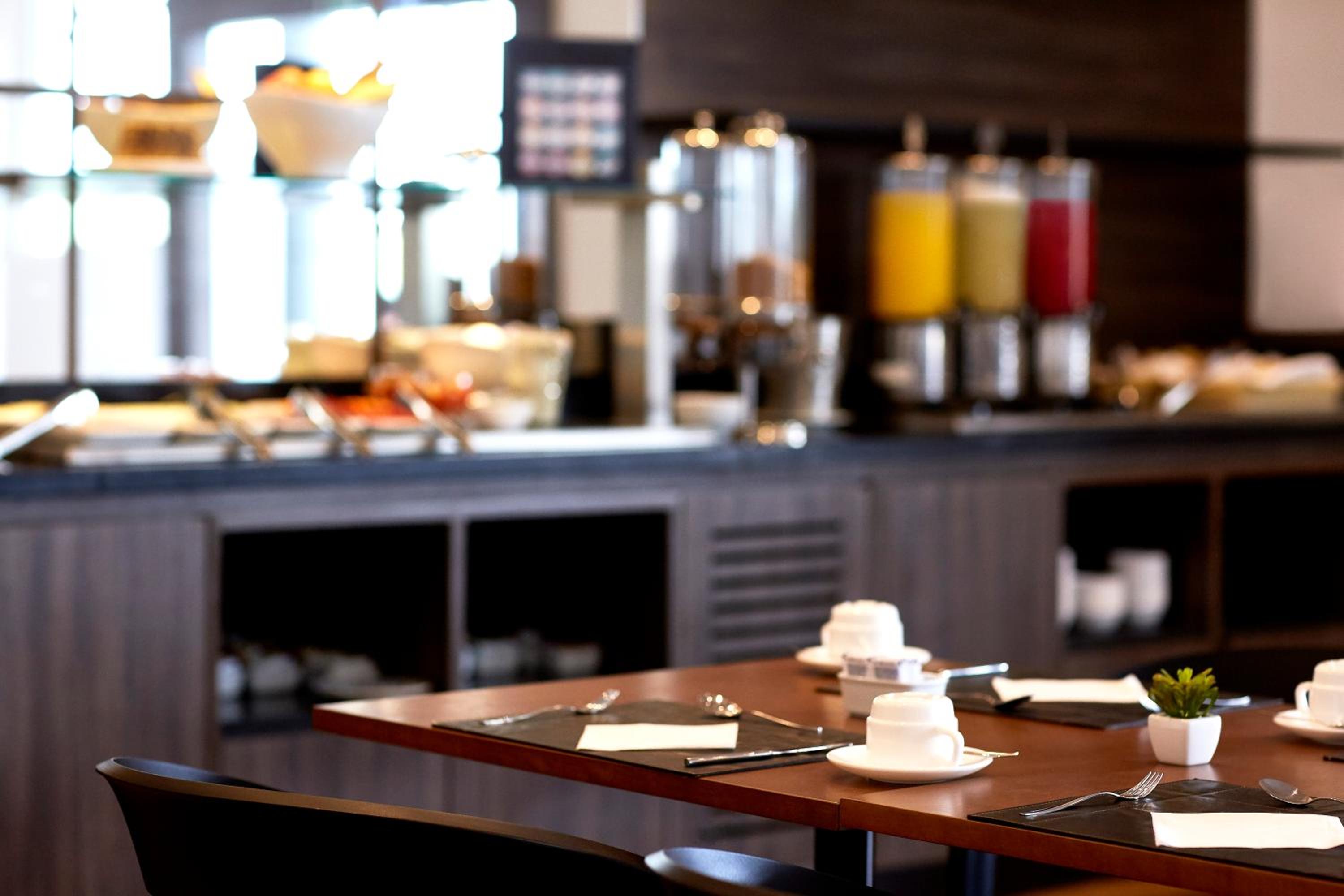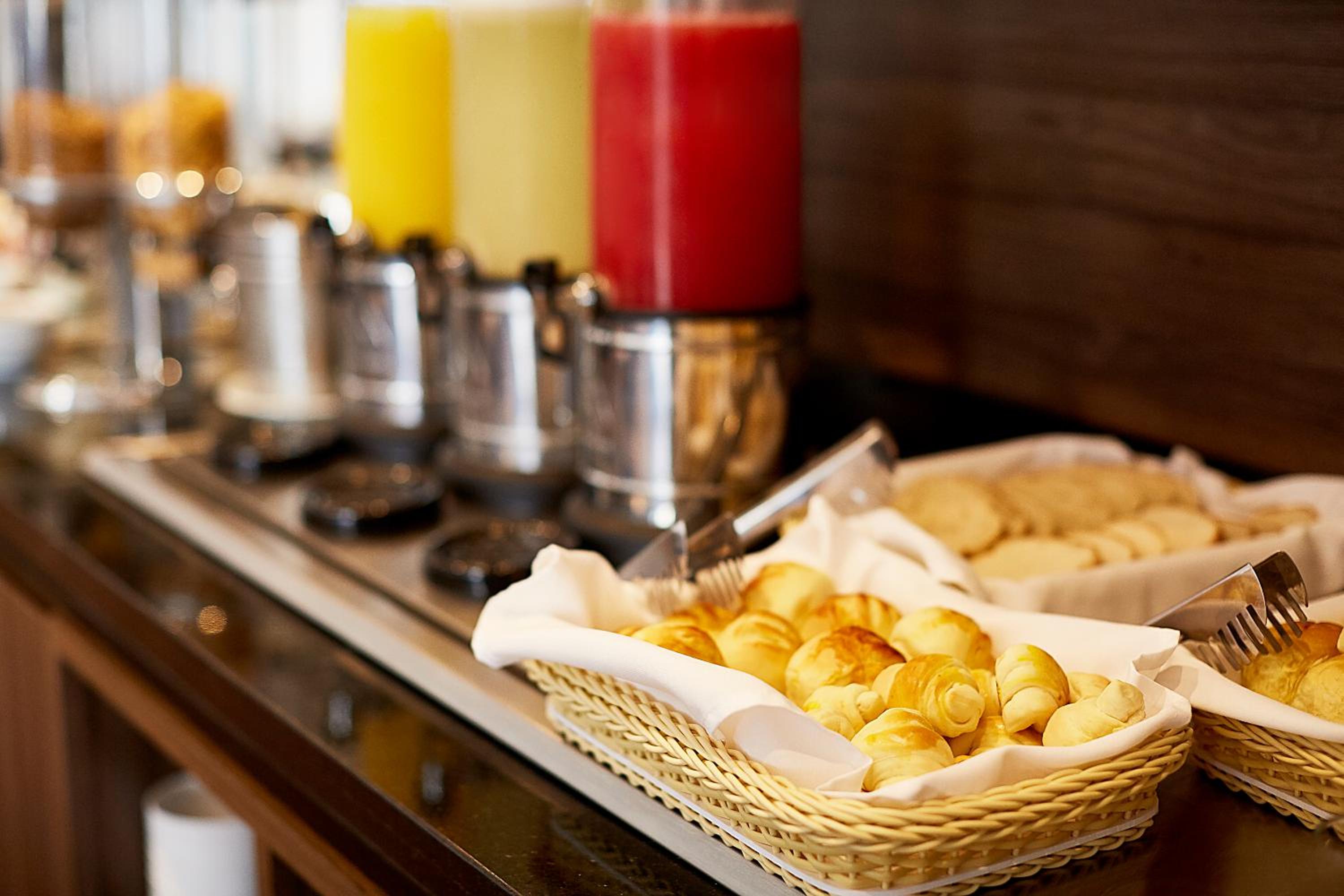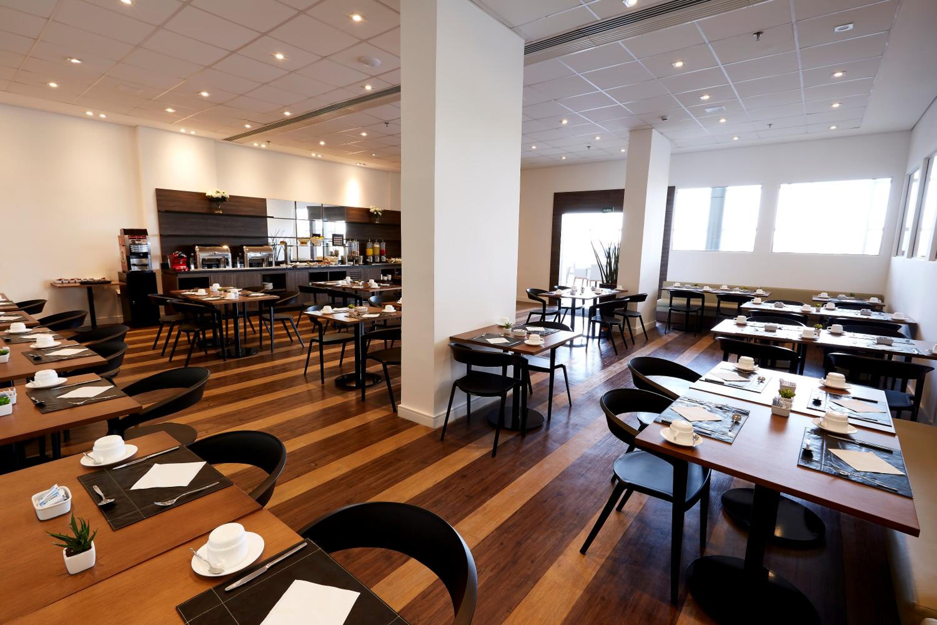 Tem restaurante e a comida e muito boa, leve. O garçom Eliseu e super simpático, atencioso, educado, muito prestativo.! Tem uma cafeteira espresso com variedades de sabores, cappuccino, chocolate, café longo, curto de cortesia do hotel, tem chá também no corredor da Recepção com variedades de sabores como cortesia, bolas macia e saborosas na recepção.