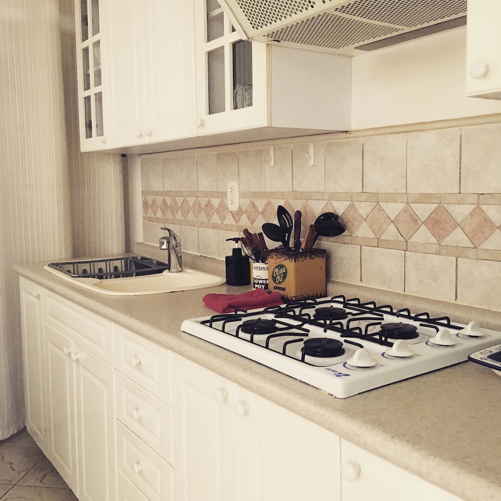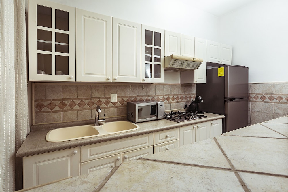 Lets start with this , for the price you cannot beat it - but there is a few ways this property could be improved . There is an extremely limited kitchen. You really cannot cook a whole meal , but definitely house some late night drinks and snacks! No oven , but has a brand new microwave and cold fridge . The stove top was gas so you need a lighter to use it fyi .The water pressure in the shower was very low and hot water went quick . But it wasn't cold let's say lukewarm. We reserved it for 3 persons however only got two towels.. there is a sleeper couch but they offer no extra linens - go prepared with your own . No napkins ,only a small towel . You can easily buy these necessities at the mega market couple of blocks down however . This property could at least offer a single good sized pan and basic cooking utensils( there are none ) . To the great points -Location was awesome ! Only a couple blocks from the party streets . Across the street from this hotel there is a restaurant and a mini mart . Very convenient. AC gets super cold , no complaints ! The TV offers only spanish channels BUT its a smart TV so I was able to connect to my own netflix account. We were extremely happy with this option . King bed sufficed ( two twins put together ) but we slept just fine. The pool was steps from our door - smaller - but quiant and cute .