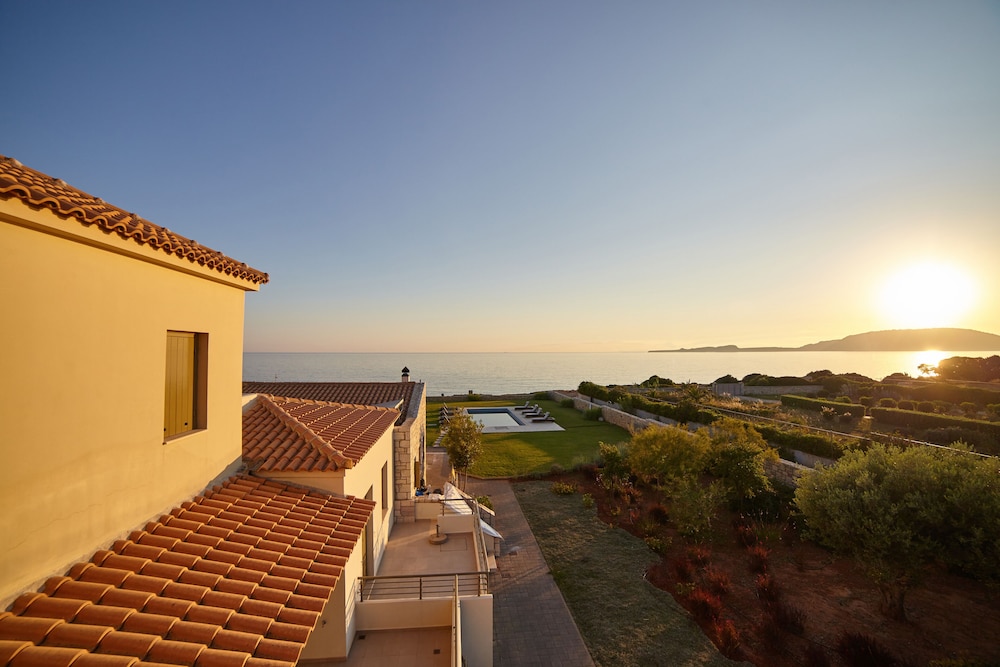 This is a relatively small hotel, new (built in 2015) and comfortable. It has a small pool which is very well maintained and a pool bar area. The views are excellent, right over the sea and overlooking the sunset. The beach itself below the hotel is not much, there are much better ones a 10-15min drive away but if you want to stay near the room it's ok. The hotel is fairly expensive for what it offers but in this area there are not many choices if you want to stay somewhere nice