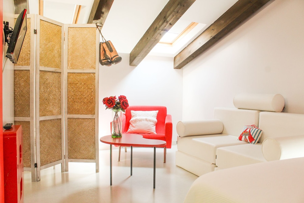 Wunderschöne Themen-Zimmer, individuell eigerichtet! Der Innenhof mit geschmackvollen Tischen kann benutzt werden, an der Bar kann man sich bedienen mit Wein, Bier usw und Snacks!