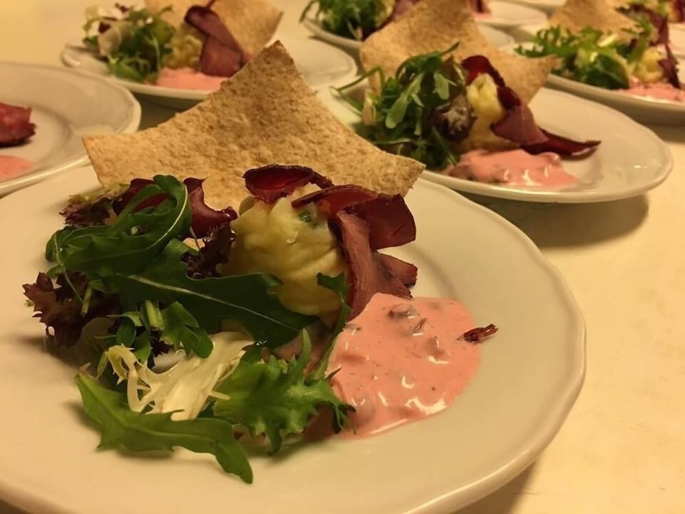 Veldig hyggelig. Mulig å bestille mat da vi kom. God mat. Hyggelig personale