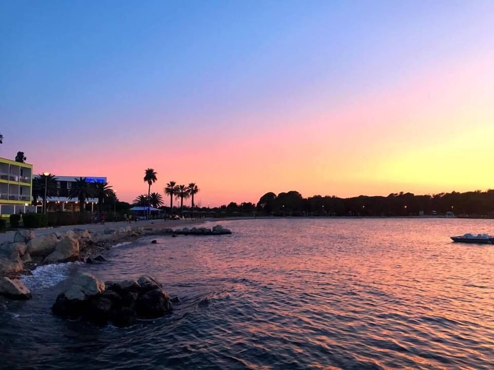 Proche plage, bien situé dans la ville, grand parking accessible , piscine cobtrerement à tous les autres.