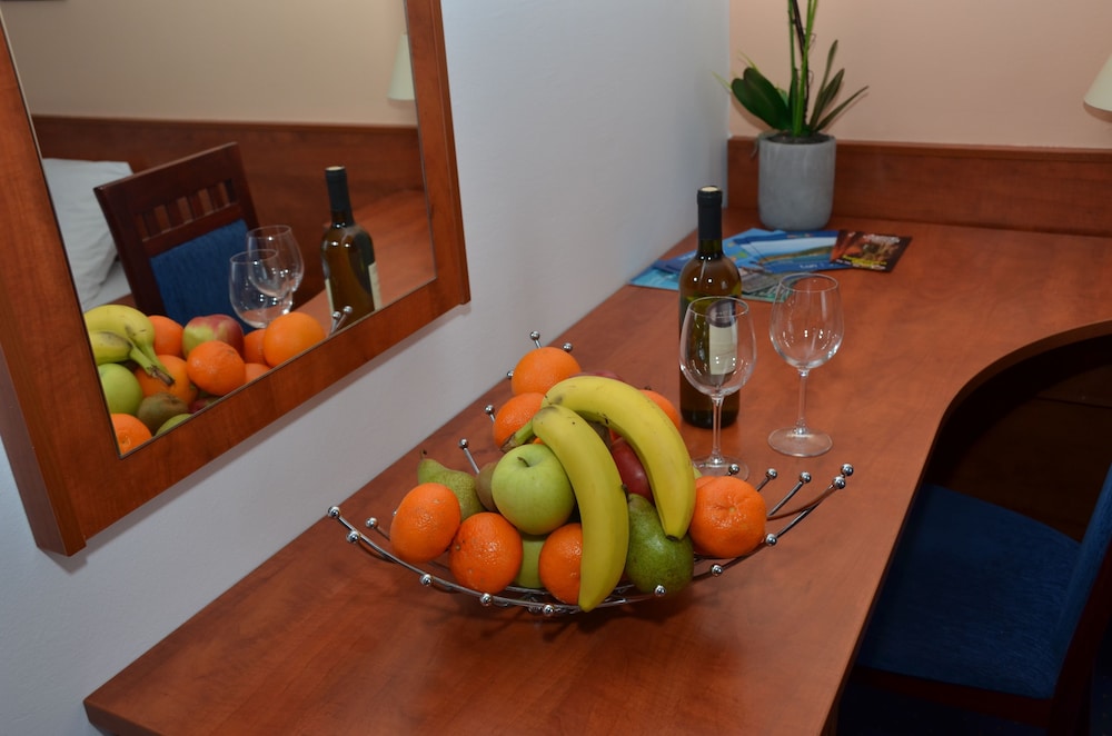 - After finally having access to our room, we found (because of the smell) dried vomit on the bottom of the bathroom sink. We were heading out for a few hours, and stopped by reception to let them know, and ask them to send someone to clean it while we were out, they had our permission to enter our room. Returned a few hours later in the early evening, and it had not been attended too, so we had to clean it ourselves. Language was not a barrier as my partner speaks Croation, so they clearly understood what was going on.