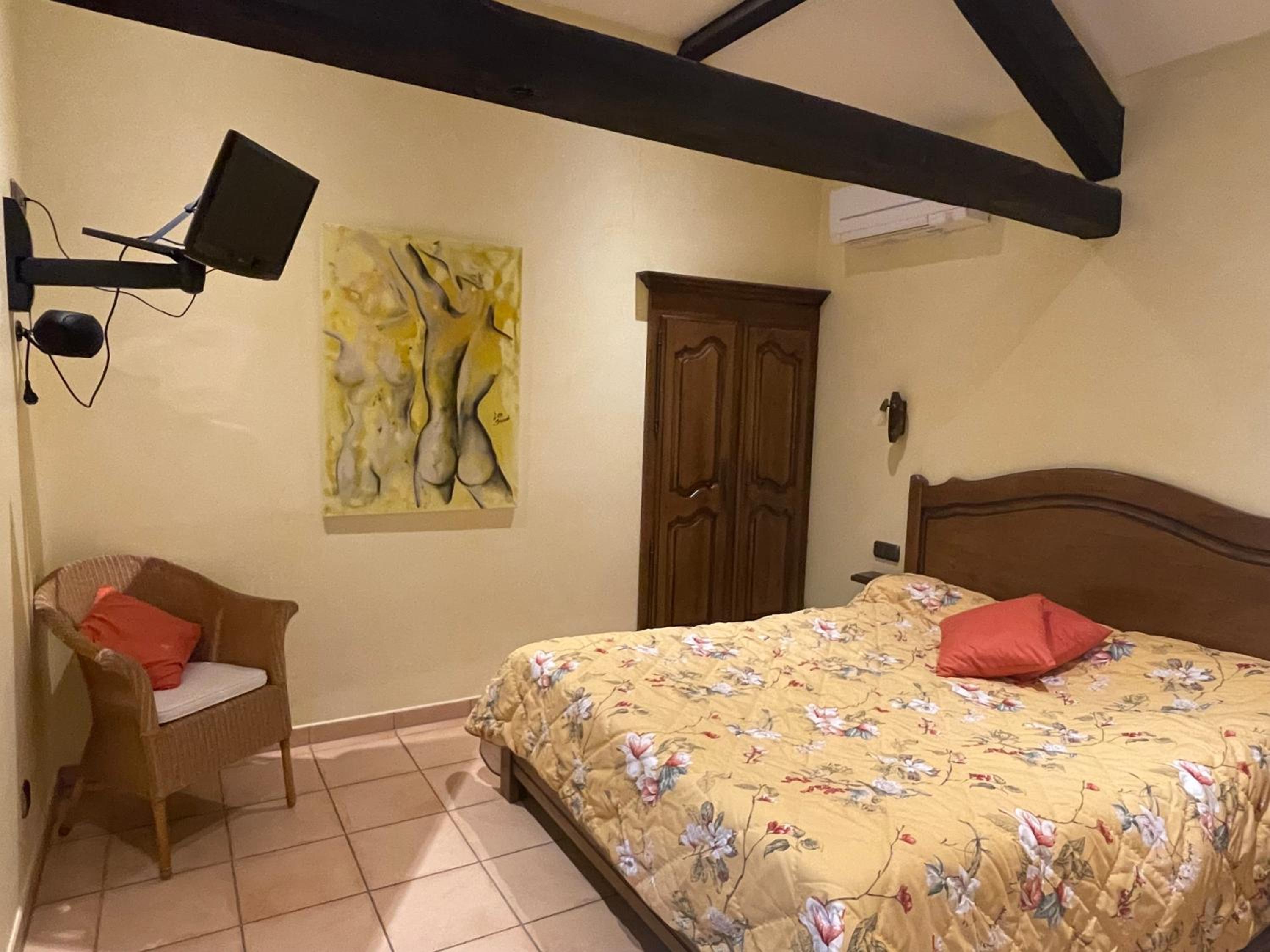 Manque de prise electrique, dans la salle de bain et au niveau d'un des chevets de la chambre.