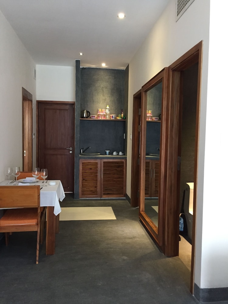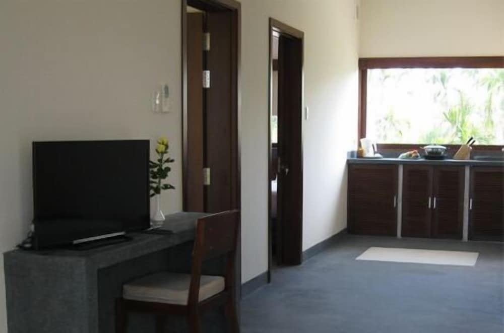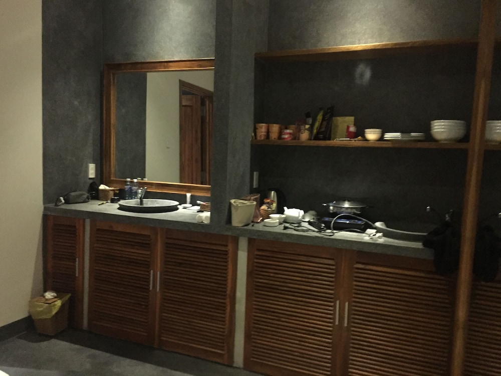 After a quick trip to the beach, we found a large bowl of big, juicy (and very sweet) lychees on the table and some chocolates at our bedsides with handwritten notes wishing us sweet dreams. These touches made our stay all the more enjoyable. They even lent us a mobile phone with the owner's number attached in case we got lost. Amenities were not lacking, but though we didn't eat there, I noticed there were only 2 sets of cutlery (it was a 3-4 person room).