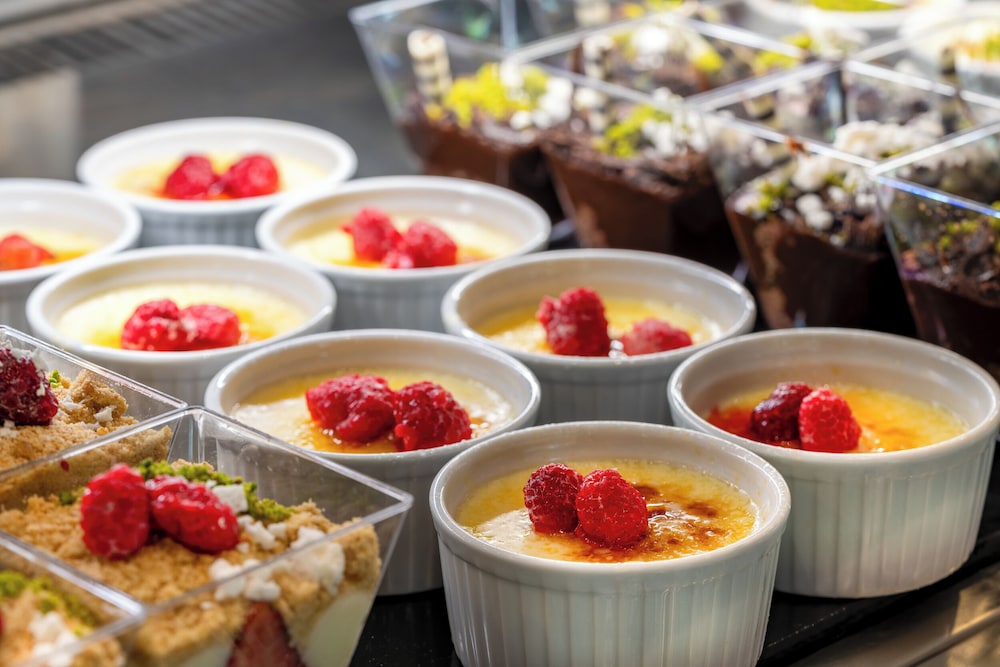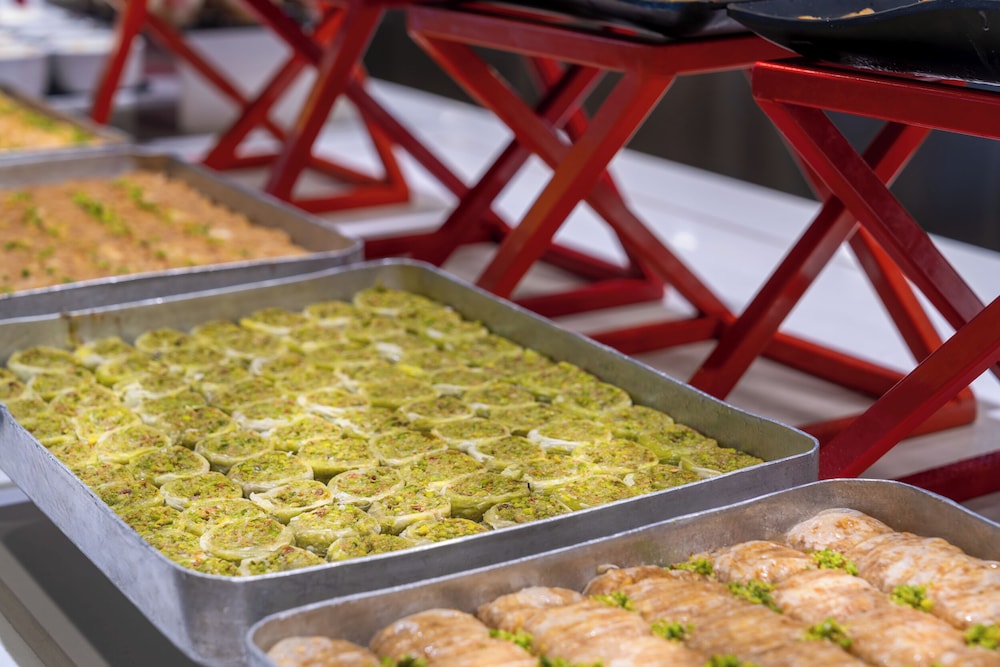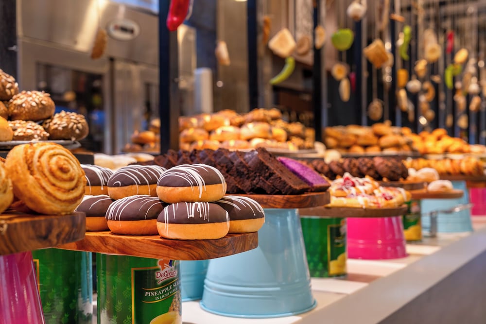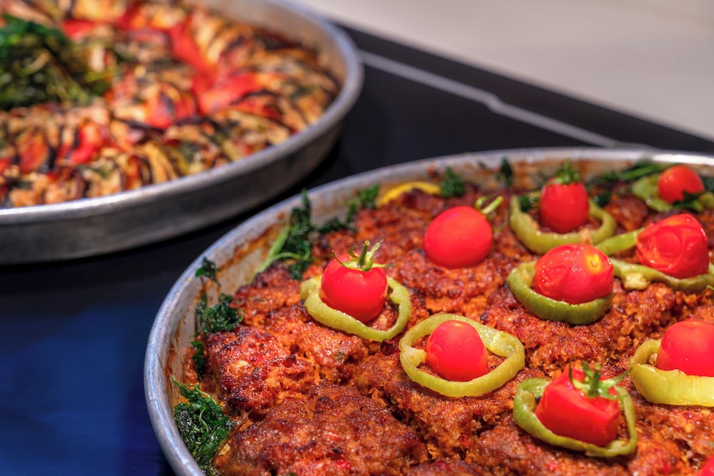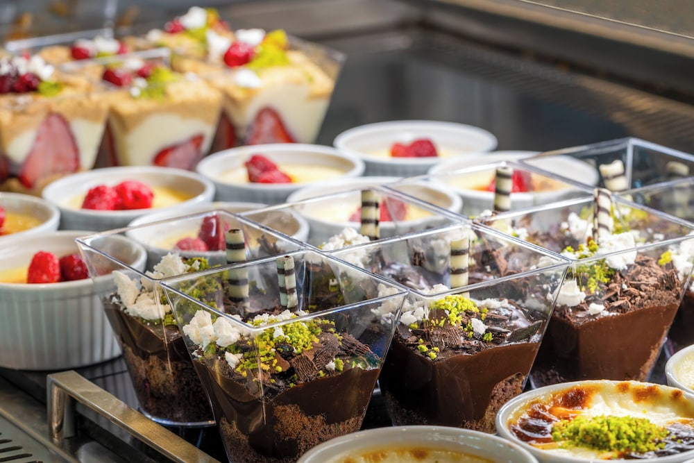 Plenty of food choice in the buffet . We went to the food area by the pools once and had donner meat and some pizza , was a change and went to the dom bar twice after 2.30 also nice for burgers and fries . Trendy martinis are nice patiaserie is nice to visit for pastries . Would definitely return again