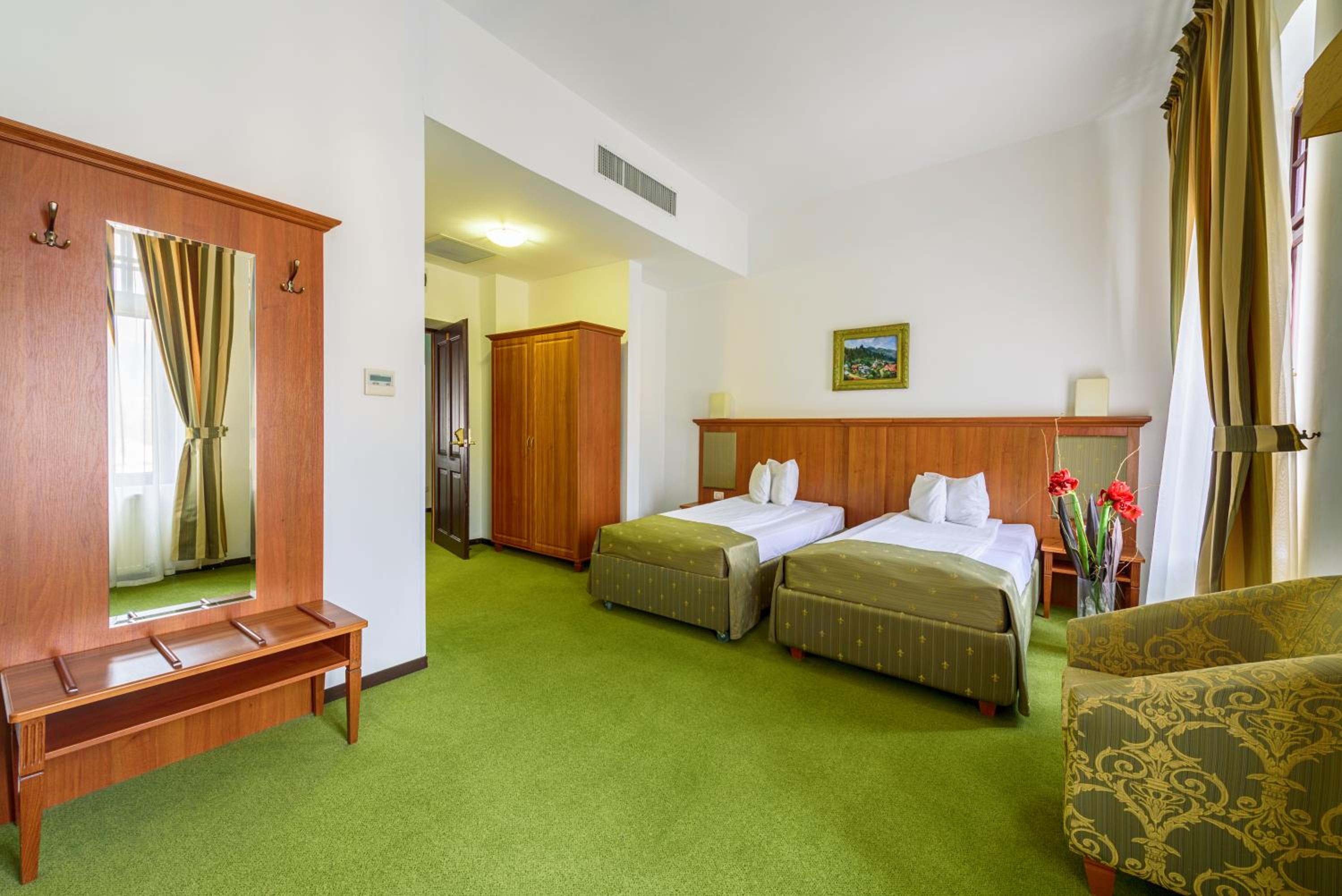Hotel Palace, nestled in Baile Govora next to a serene park, offers a tranquil escape with its on-site spa and upscale restaurant serving delectable international dishes.
