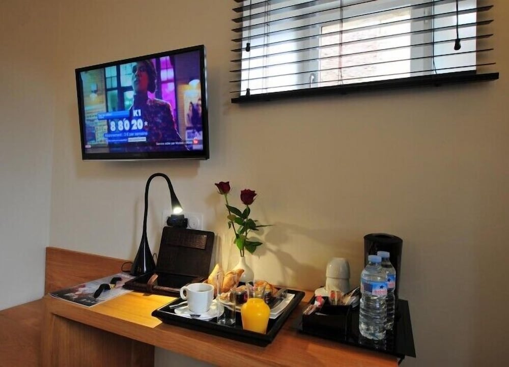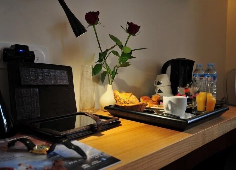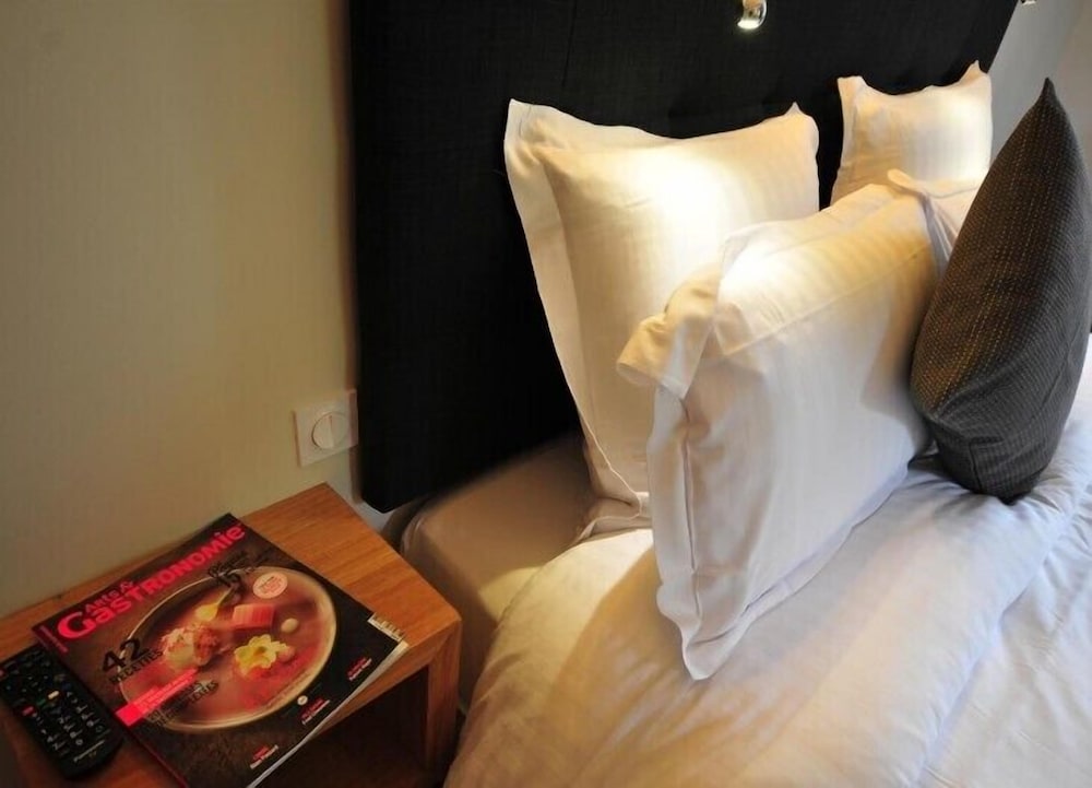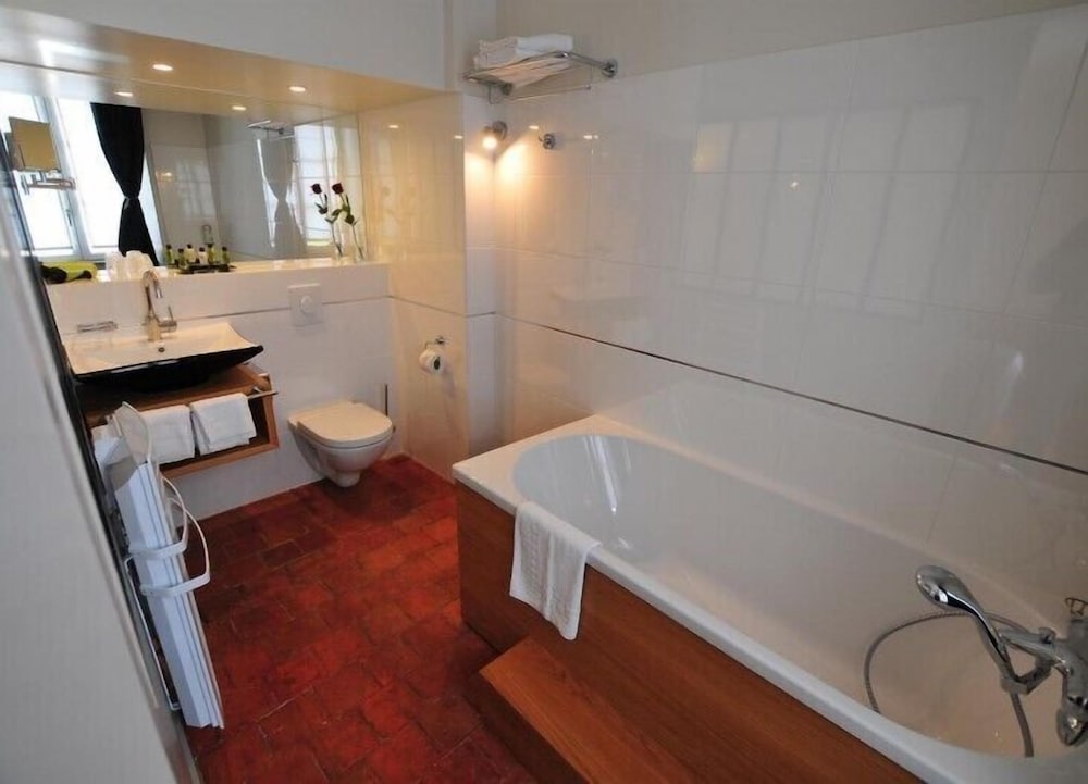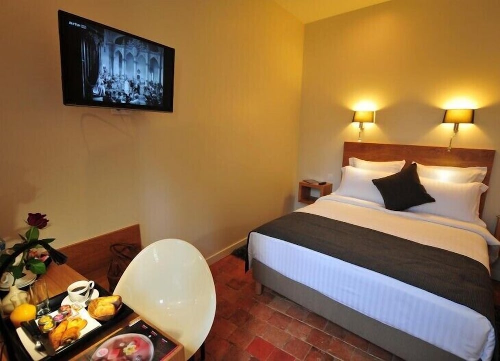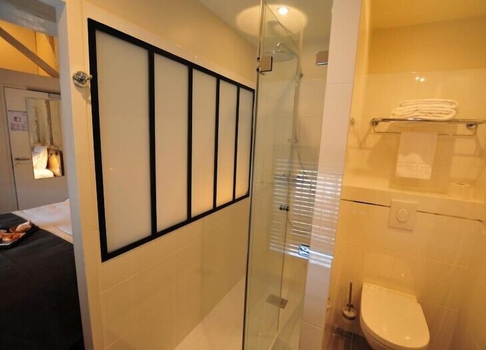 Was excited to stay on the square with the cathedral, but the inability to pull up to the hotel and no elevator plus an incredibly narrow spiraling staircase made getting in and out feel down right dangerous. The room is clean, but unbelievably small; the bath was nice- about the same size as the room! Dinner in the hotel restaurant was pretty good. Petite déjeuner was in a sister hotel down the street and was very good. The diminutive size of the hotel would keep me from staying here again.