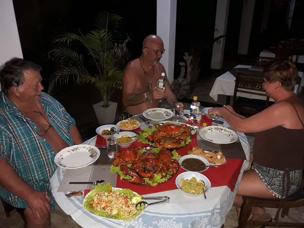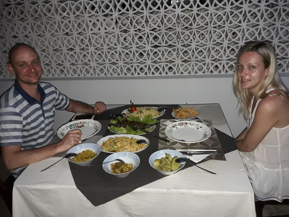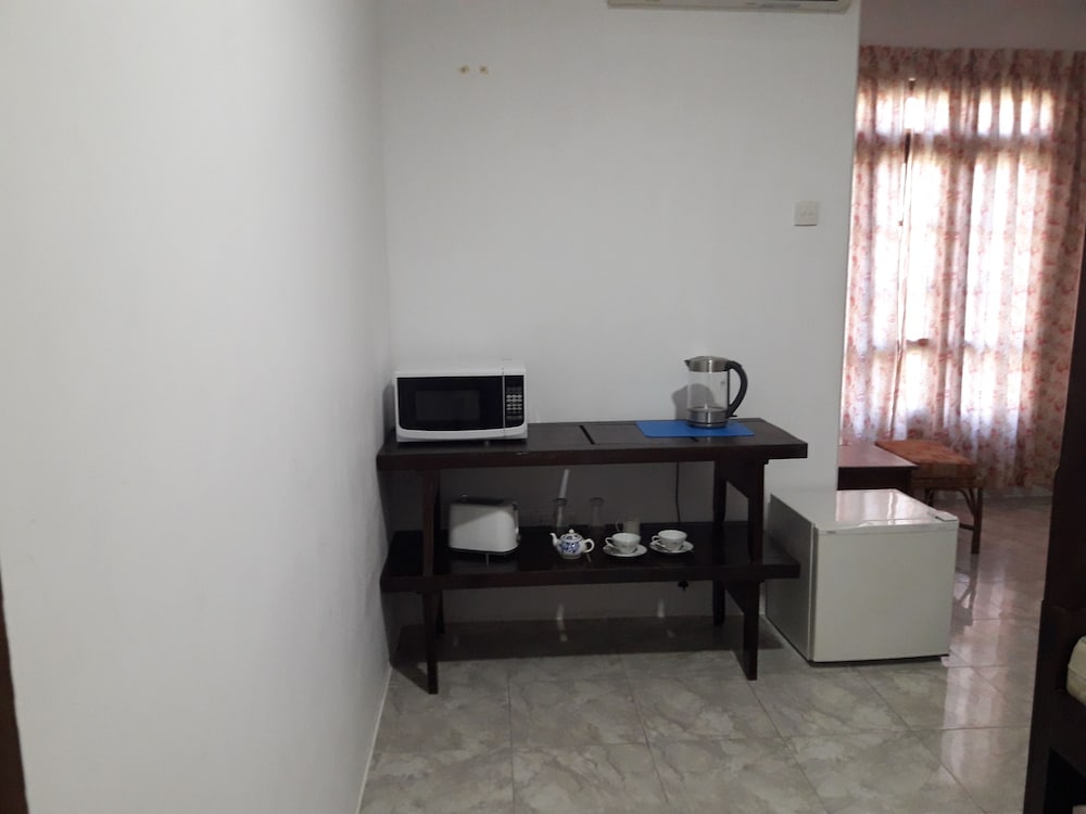 I was the sole guest as we are out of season. Only staff on hand was the owner and his wife. Beautiful garden surrounding the Villa.200 - 300 rupee tuk-tuk to downtown. Room was comfy and clean if somewhat dated. The owner's are welcoming the breakfast generous.