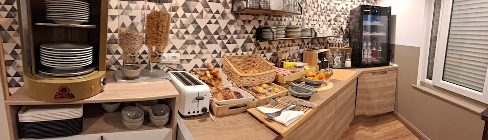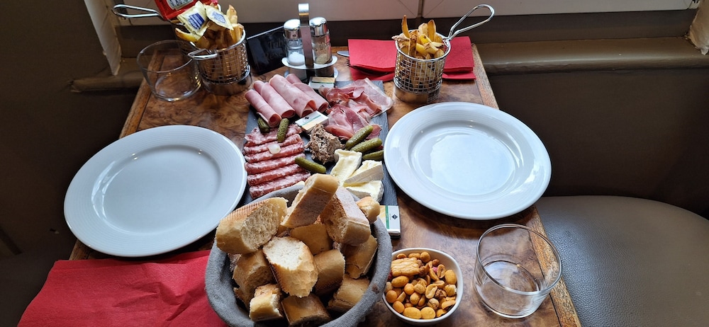Hotel âgé bien pour une nuit. Parking payant difficile d'accès avec de nombreux véhicules garés à proximité. Petit déjeuner très bien avec du choix.